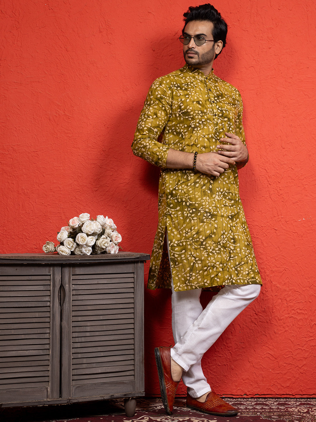 Product Description Elevate your ethnic style with this elegant Green Cotton kurta set. Designed for...
