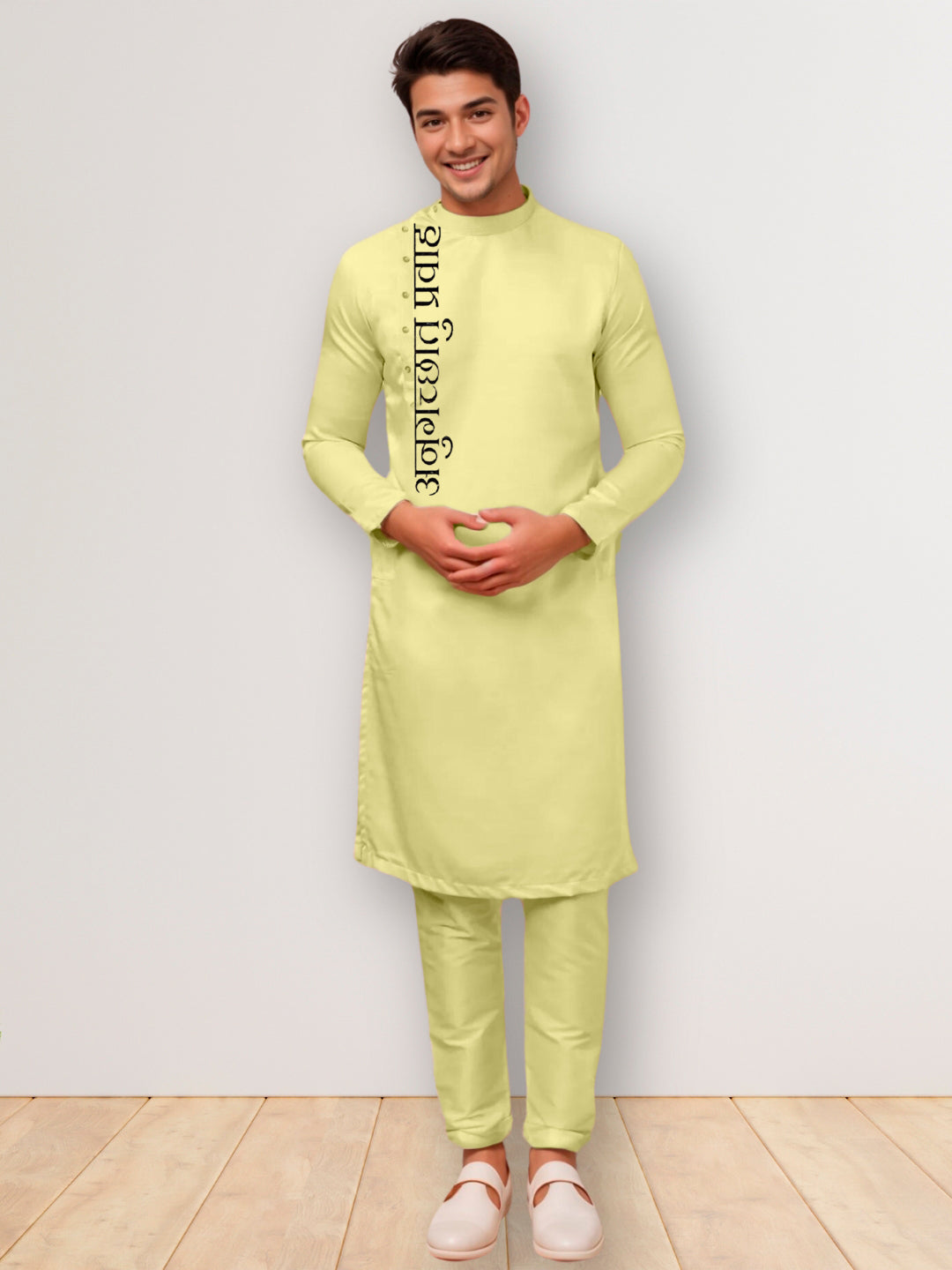 Men’s Yellow Cotton Kurta Pyjama with Lord Krishna Print