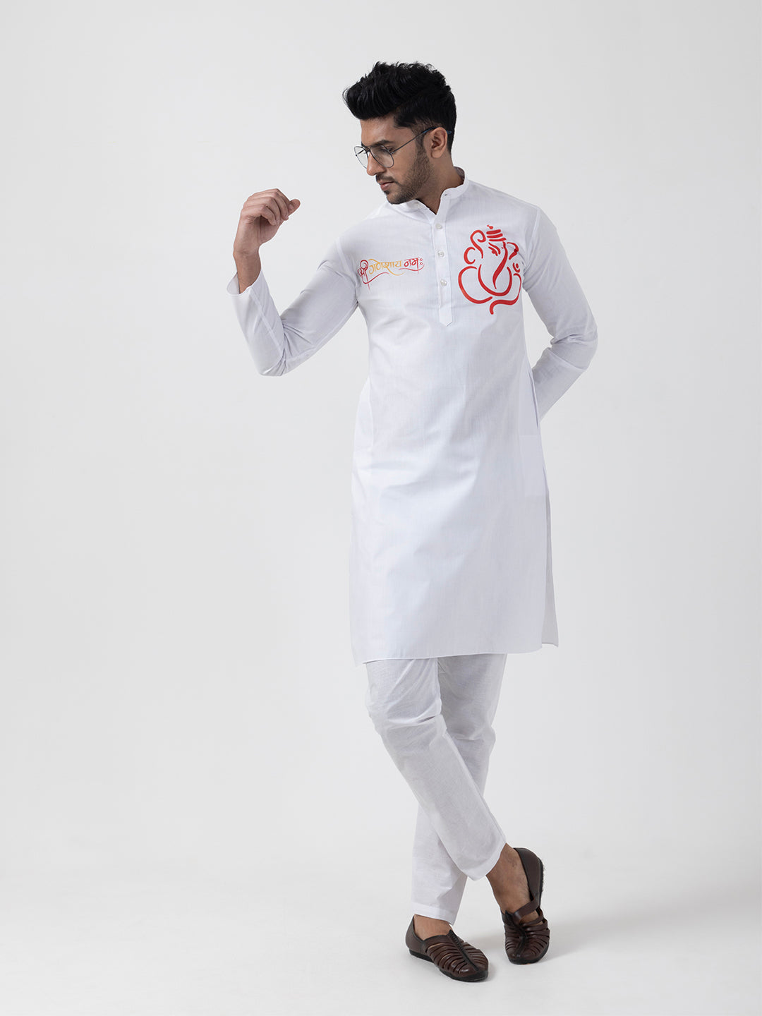 Product Description "Elevate your ethnic style with this White cotton kurta and white pyjama set....