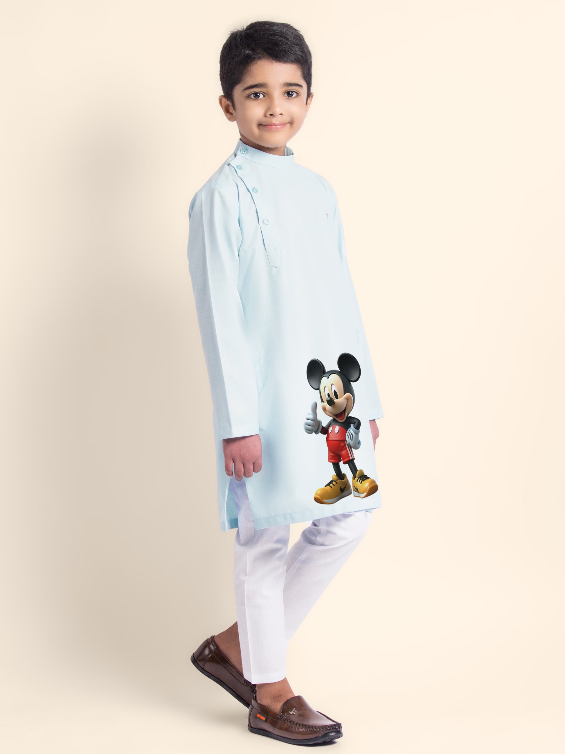 Boys Sky Blue Printed Kurta With Pyjama Set