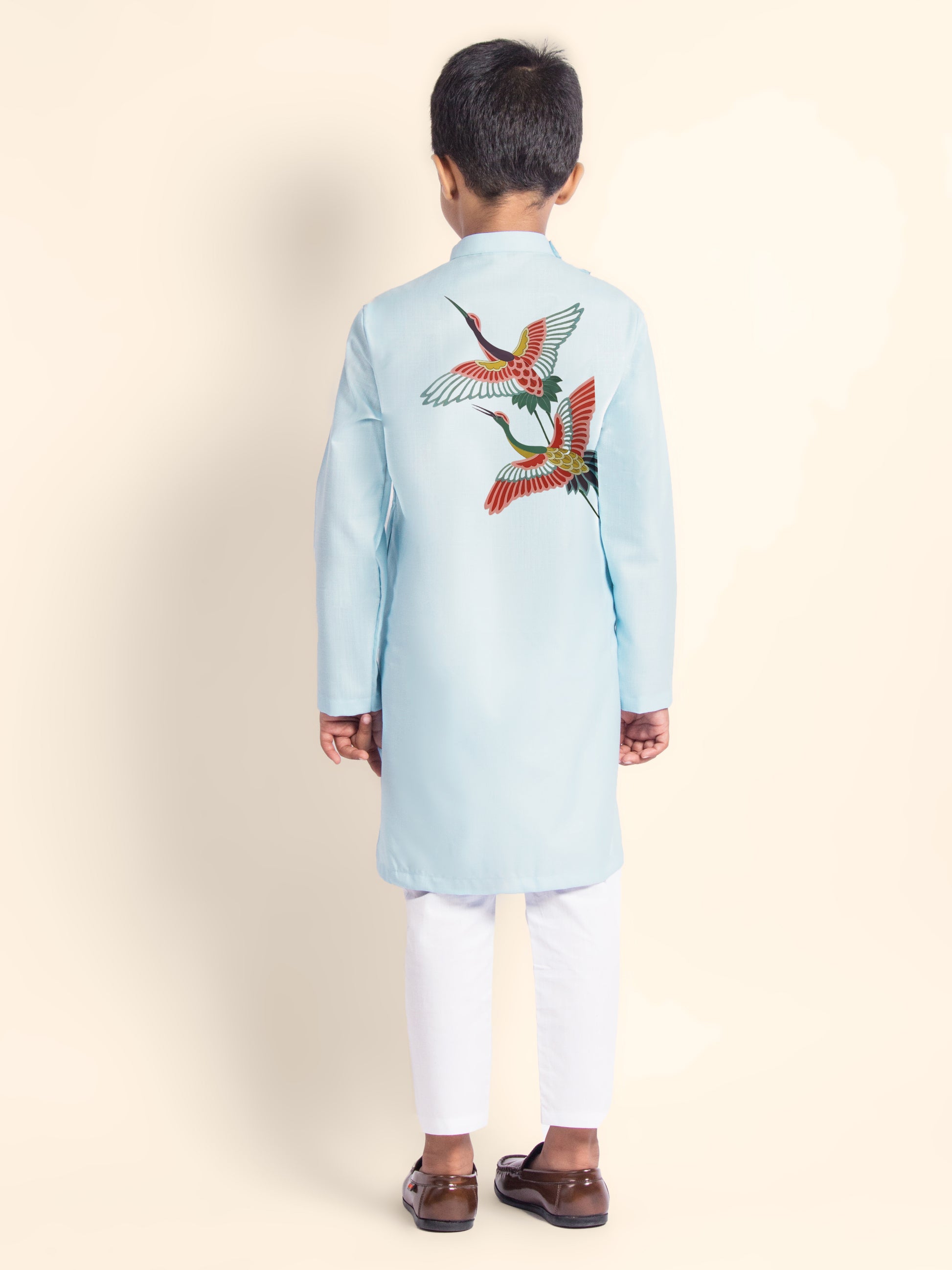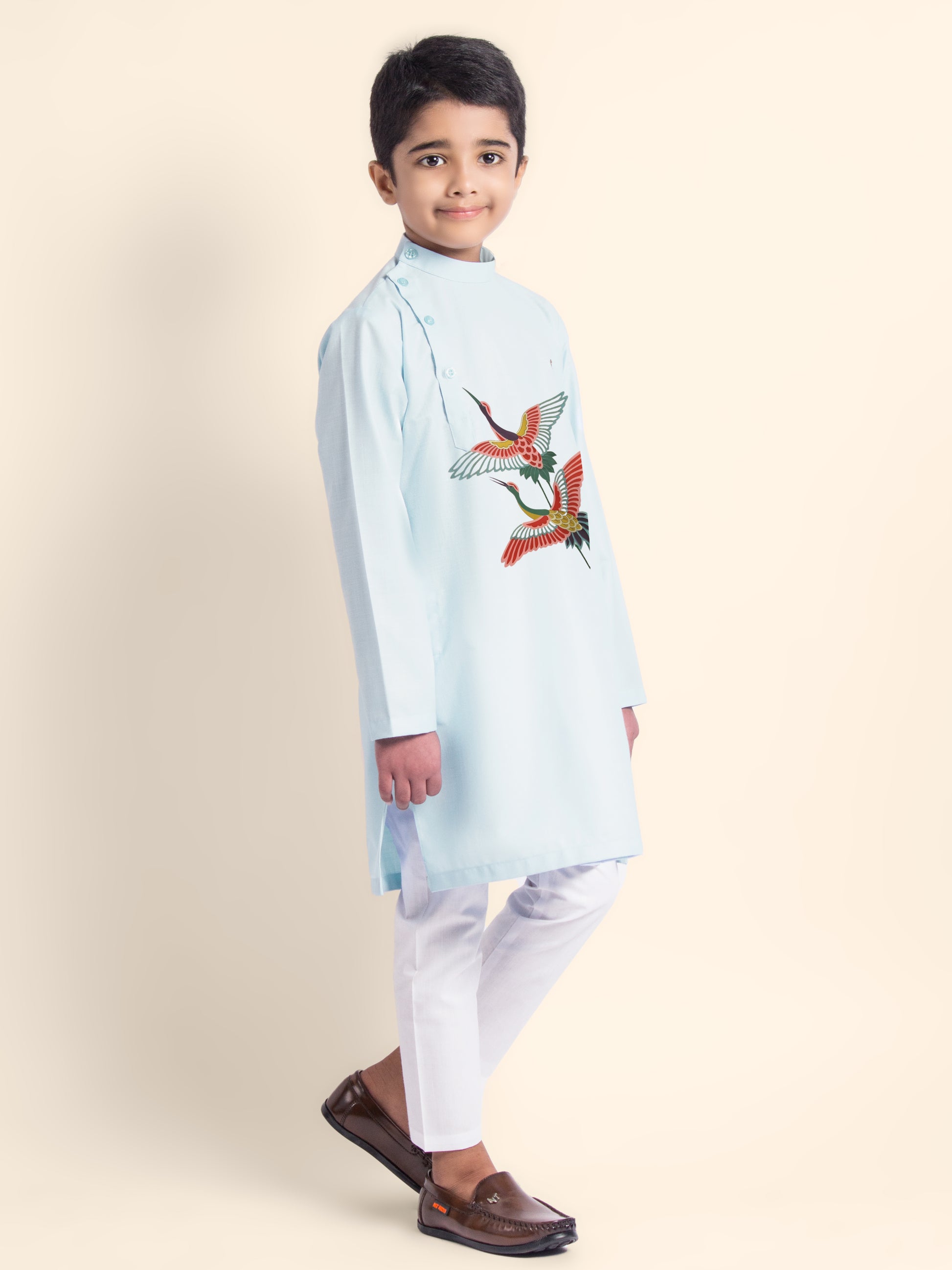 Boys Sky Blue Printed Kurta With Pyjama Set