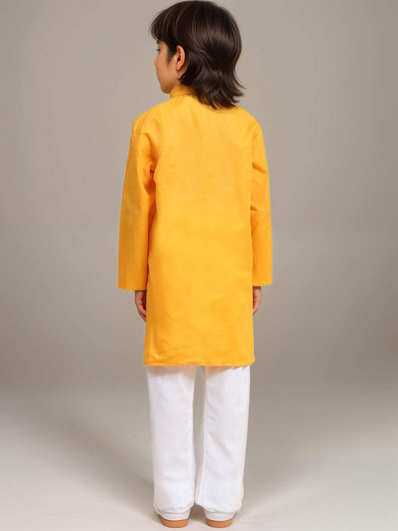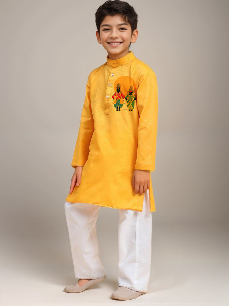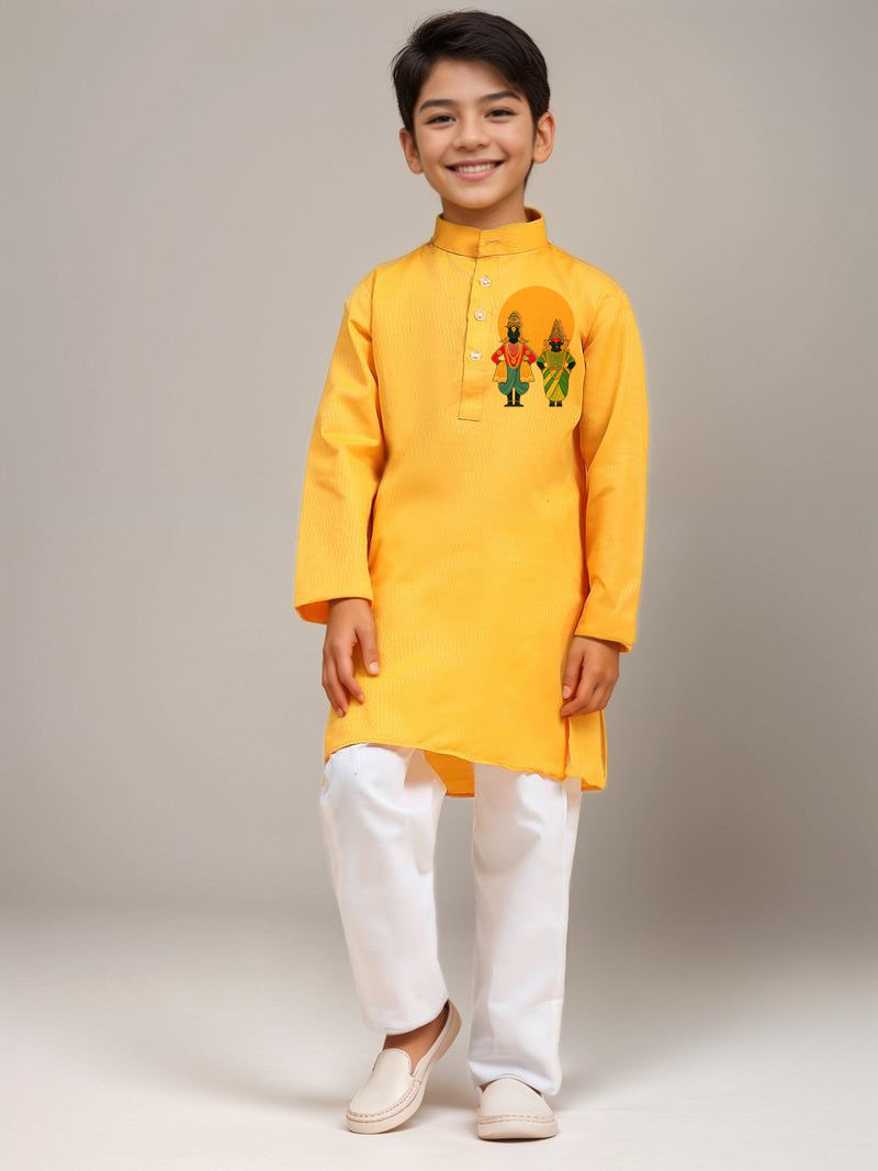 Boys Yellow Printed Kurta with Pyjama Set
