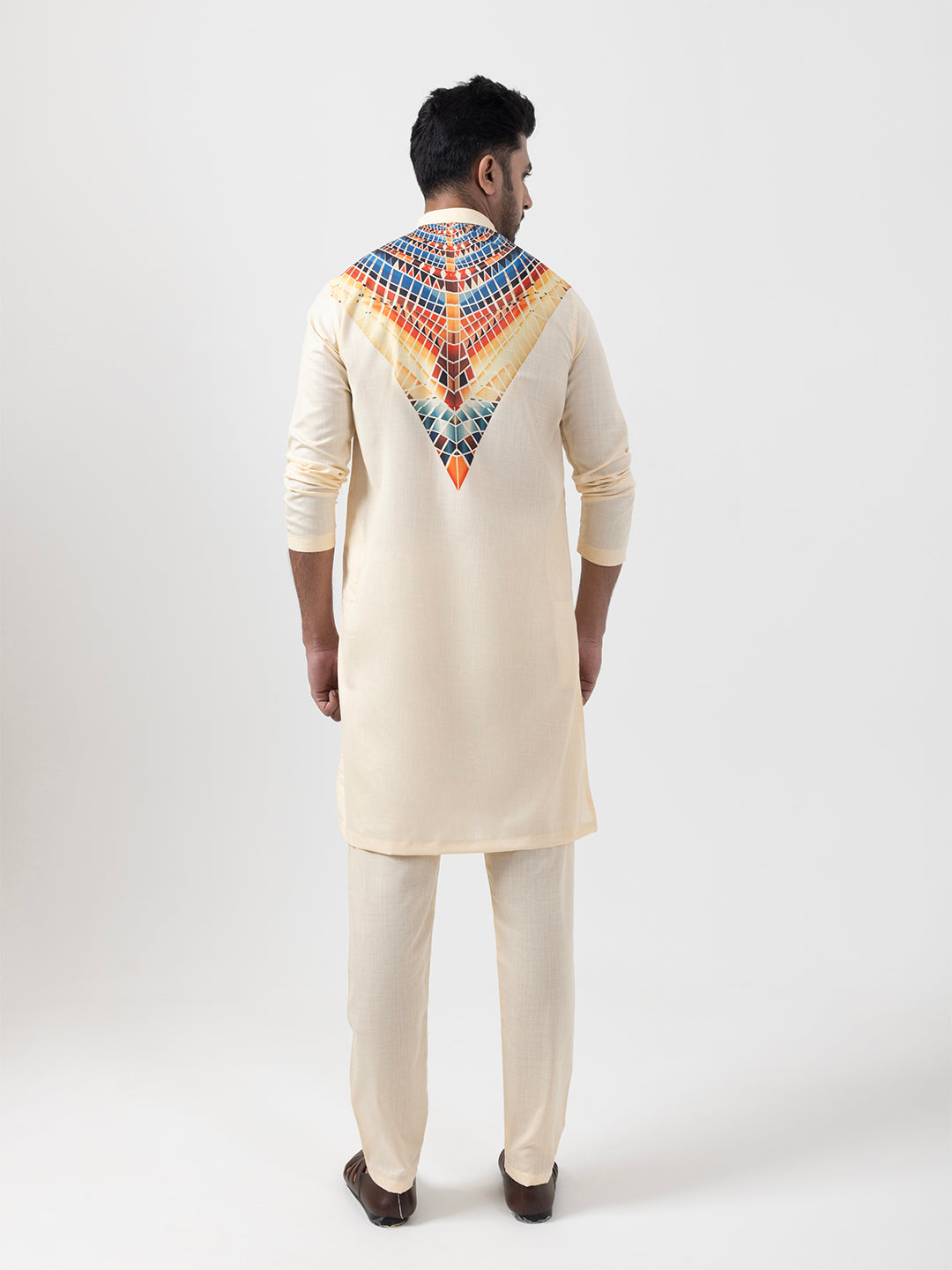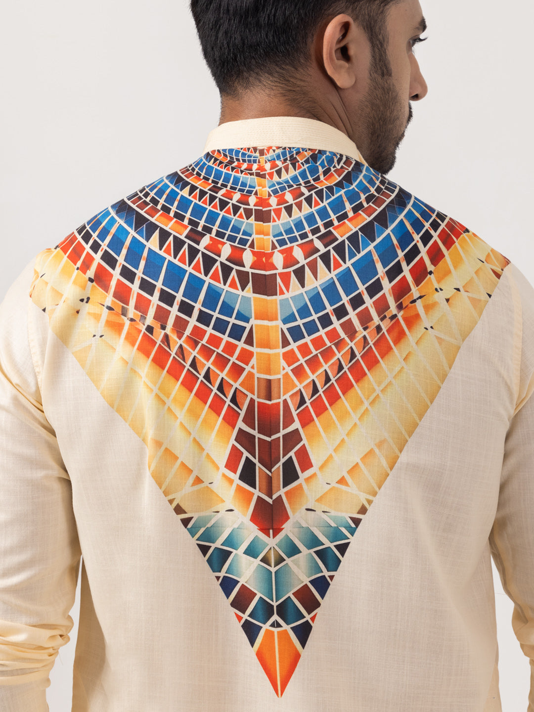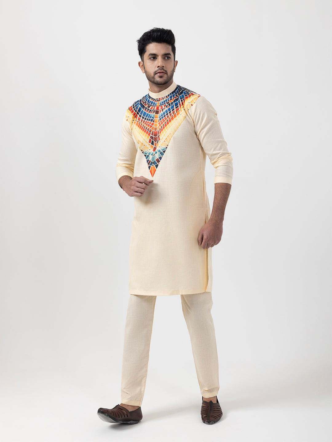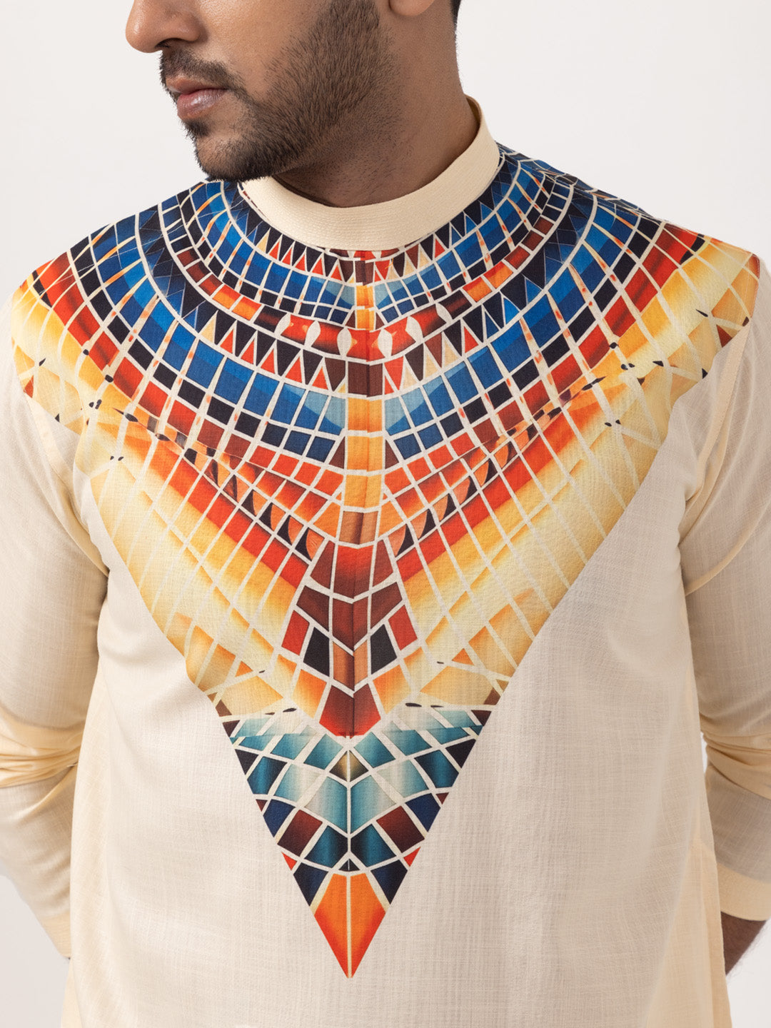 Exude elegance and tradition with this Beige Cotton Kurta With Pyjama Set, featuring an exquisite ethnic motif print that enhances its regal appeal. Designed for comfort and style, this kurta is perfect for festive occasions, weddings, and cultural celebrations.