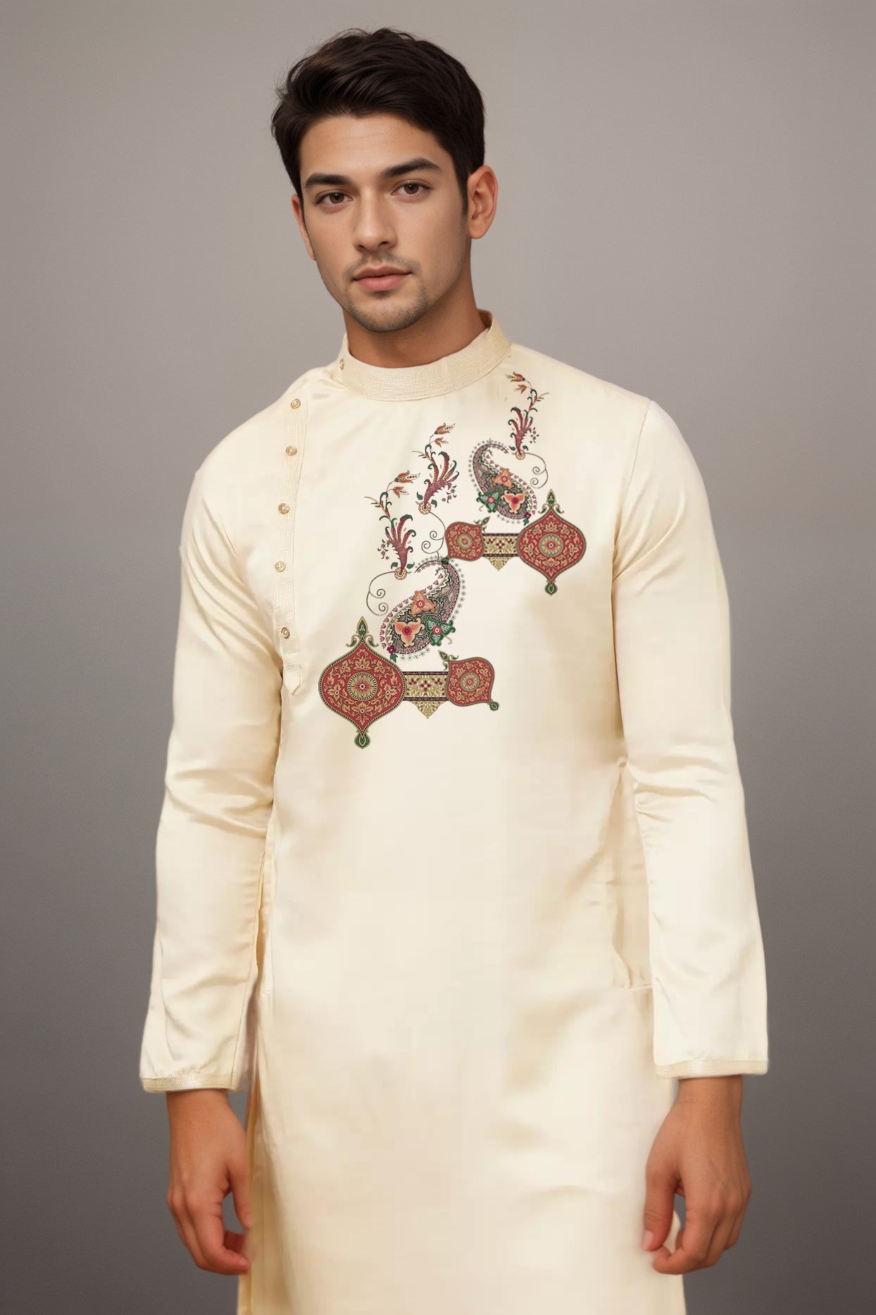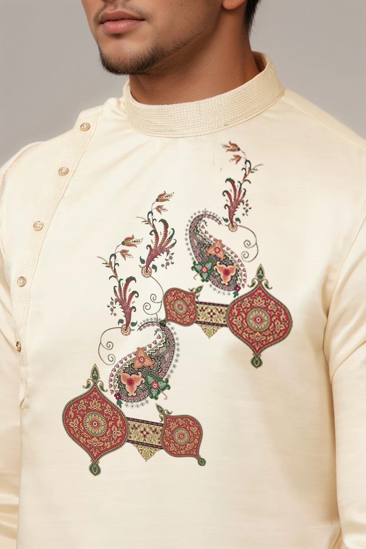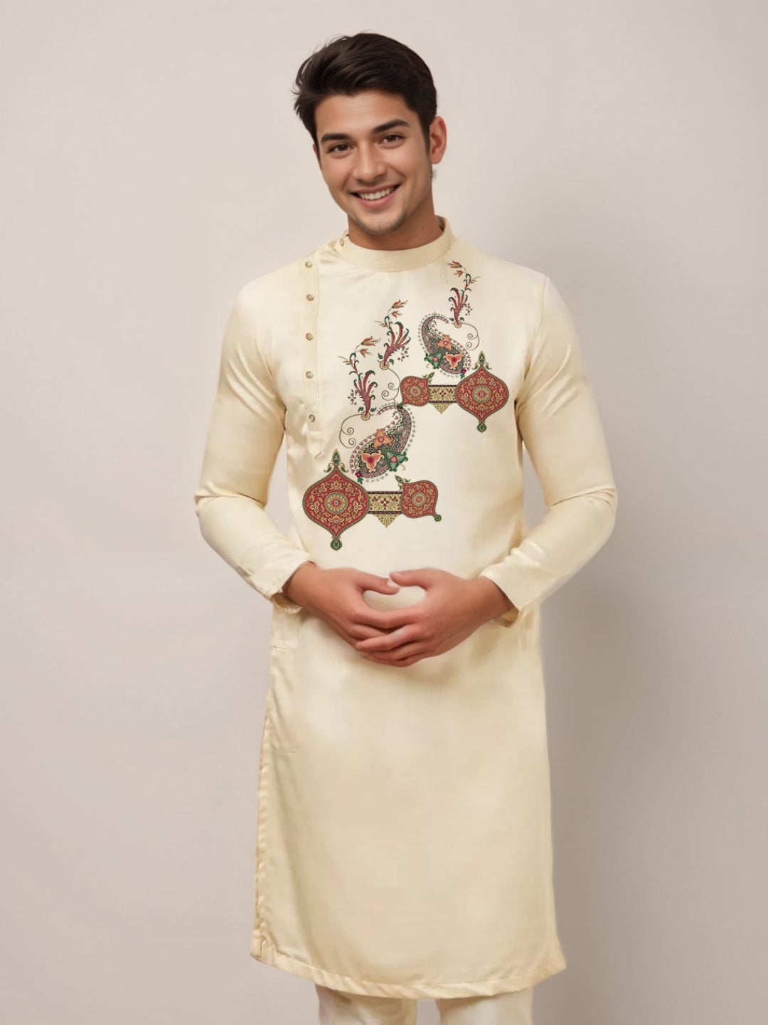 Exude elegance and tradition with this Beige Cotton Kurta With Pyjama Set, featuring an exquisite ethnic motif print that enhances its regal appeal. Designed for comfort and style, this kurta is perfect for festive occasions, weddings, and cultural celebrations.