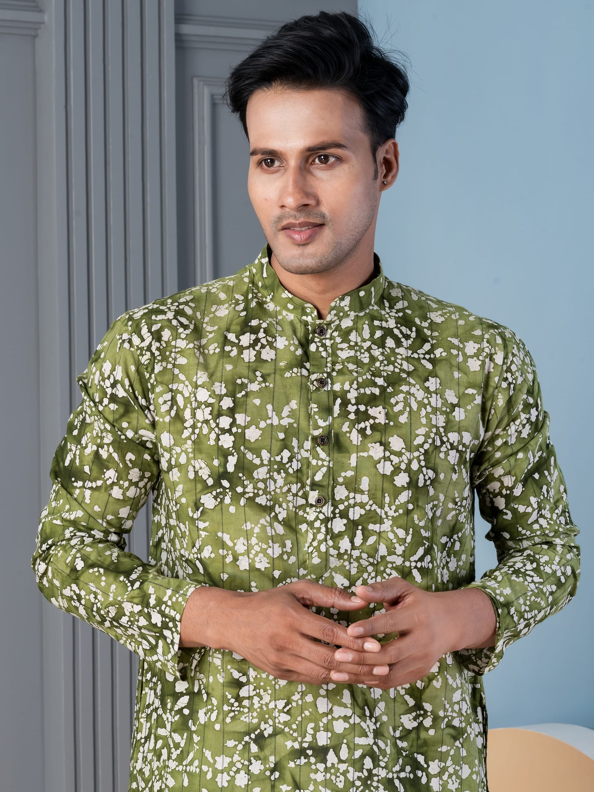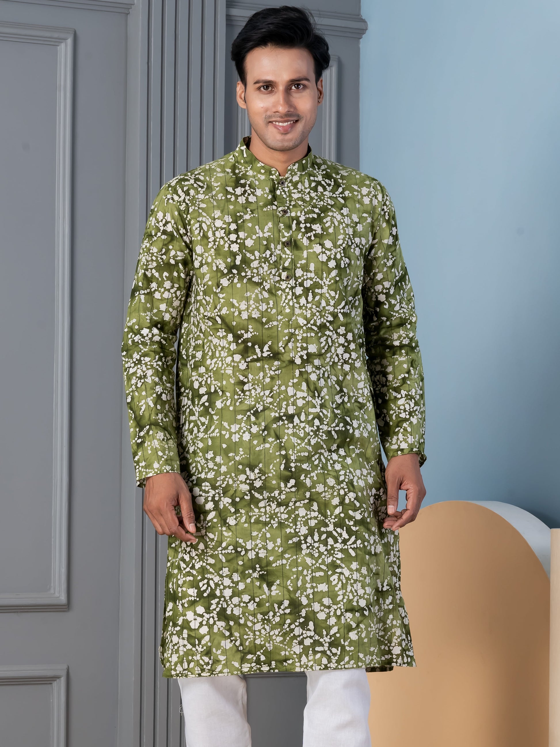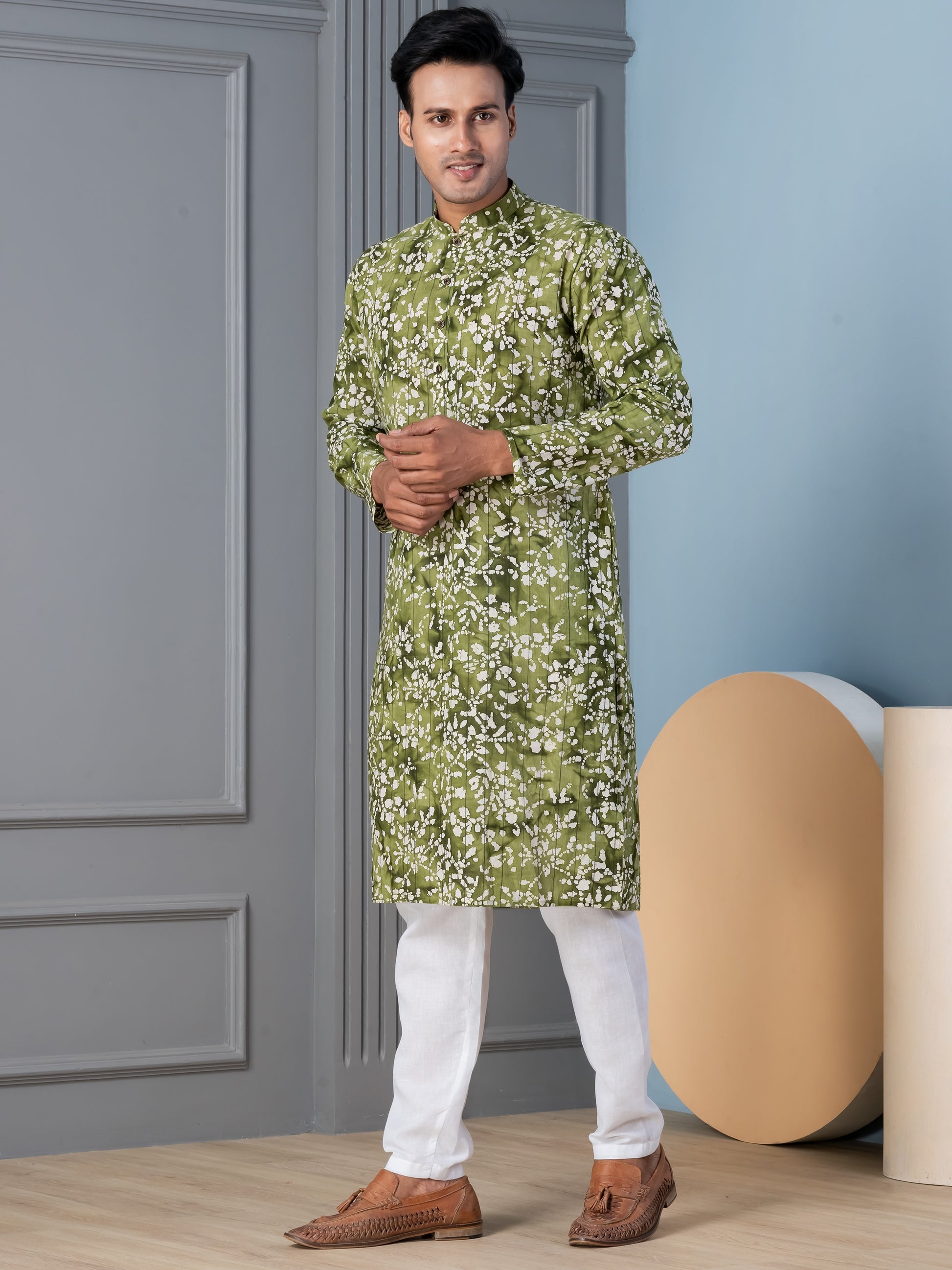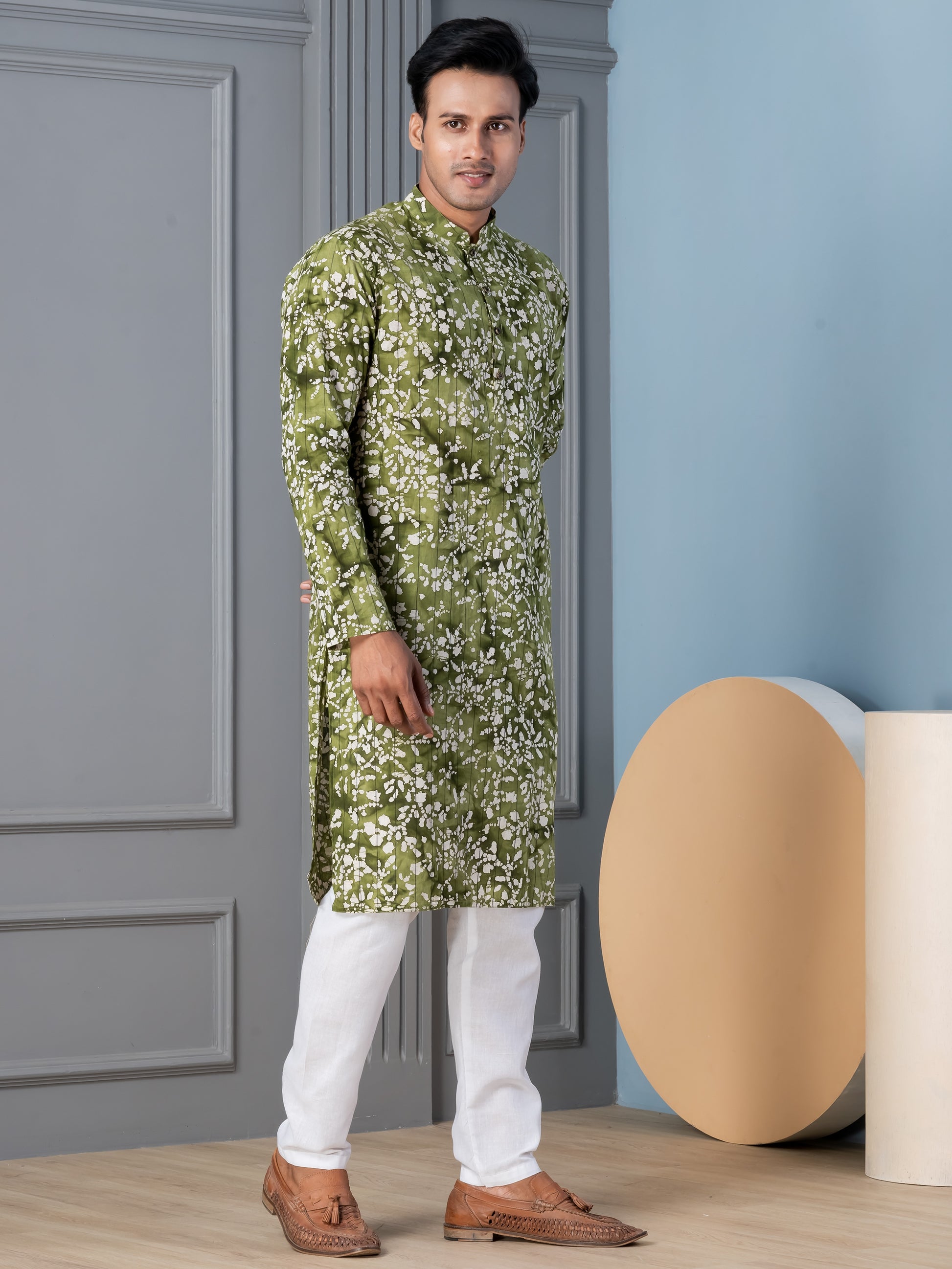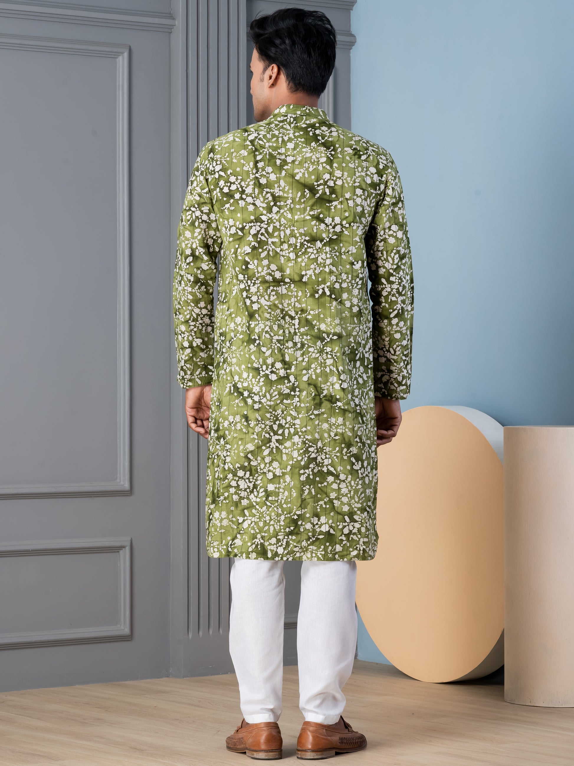 Elevate your ethnic style with this elegant Green Cotton kurta set. Designed for festive and wedding occasions, it features a refined look with a stylish print, making it a timeless wardrobe addition.