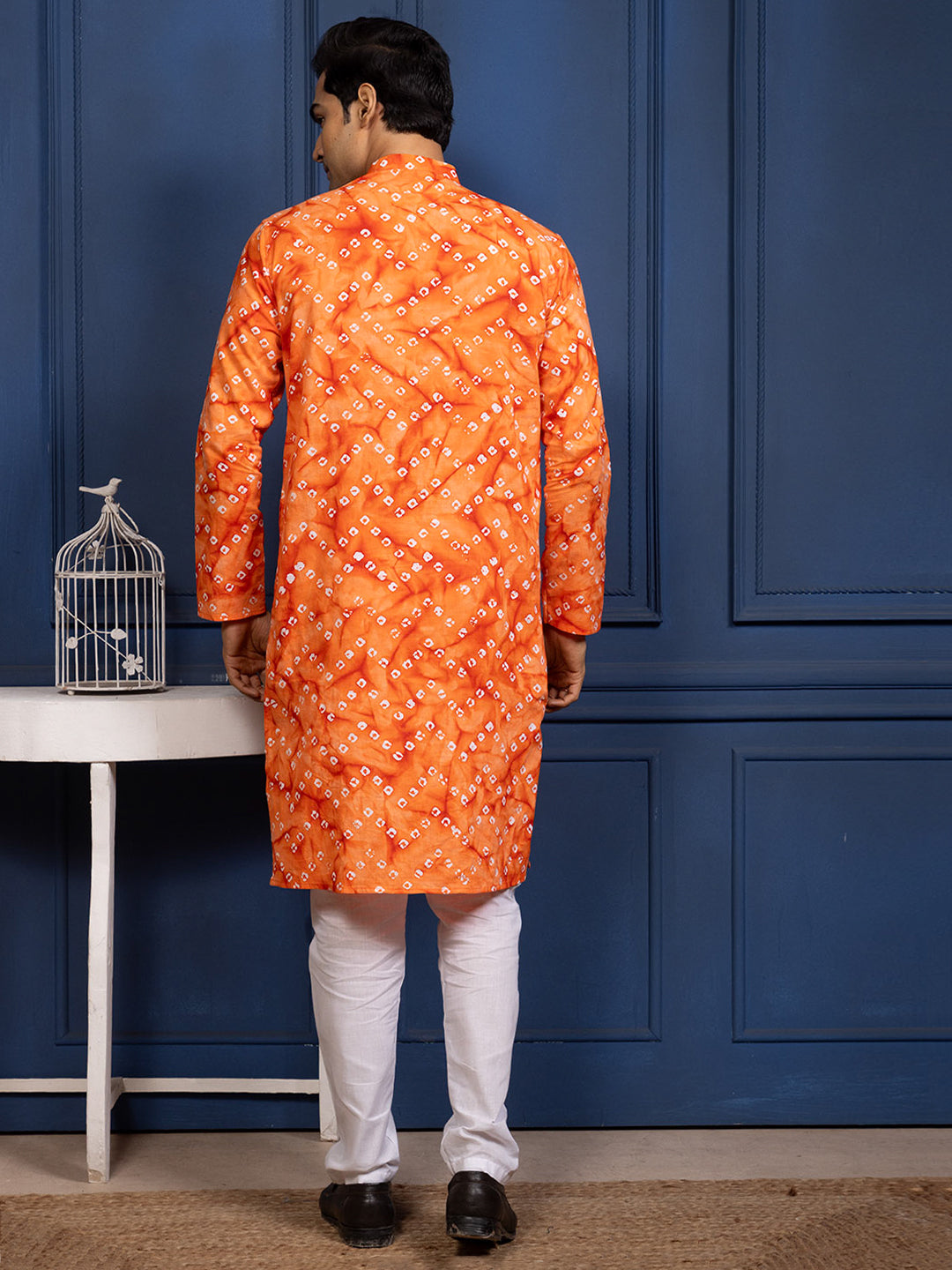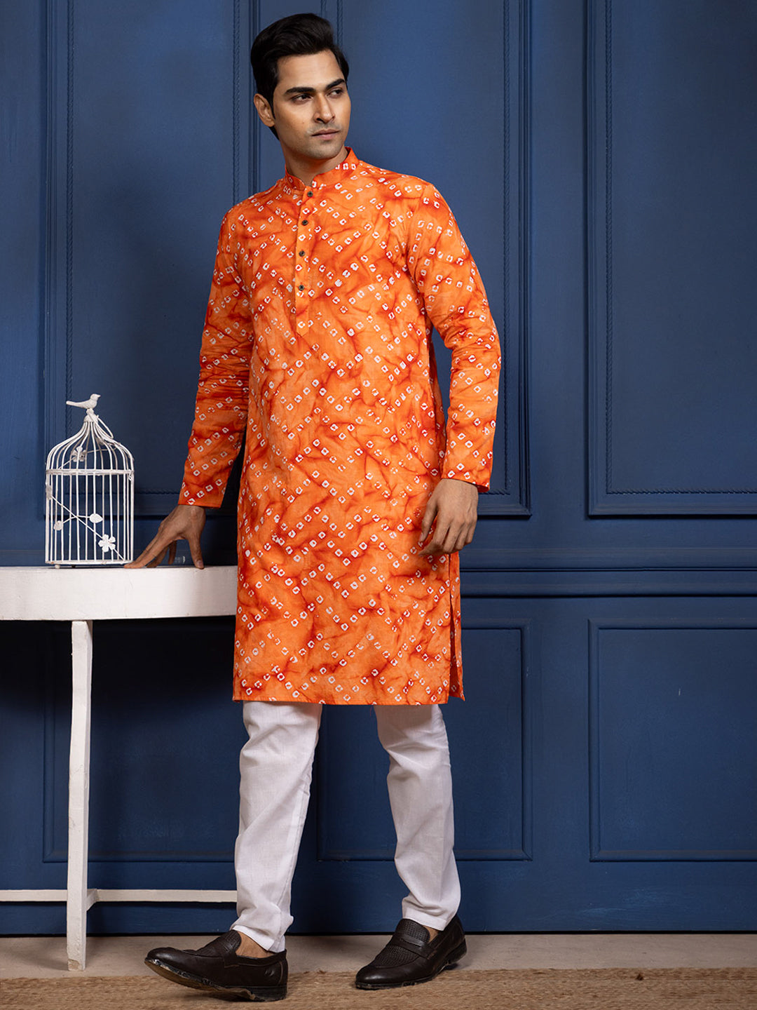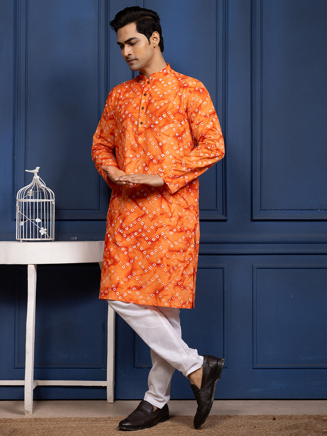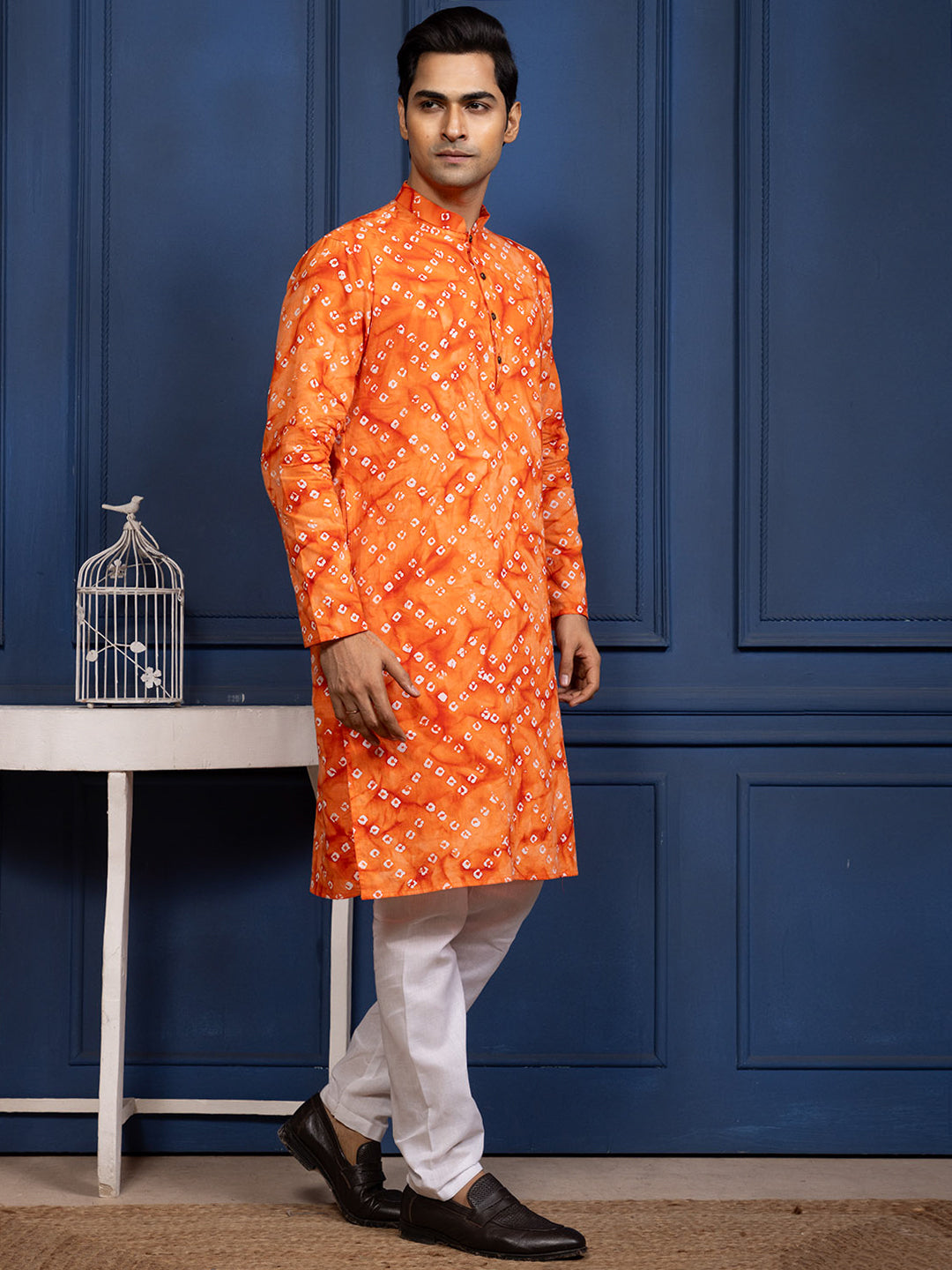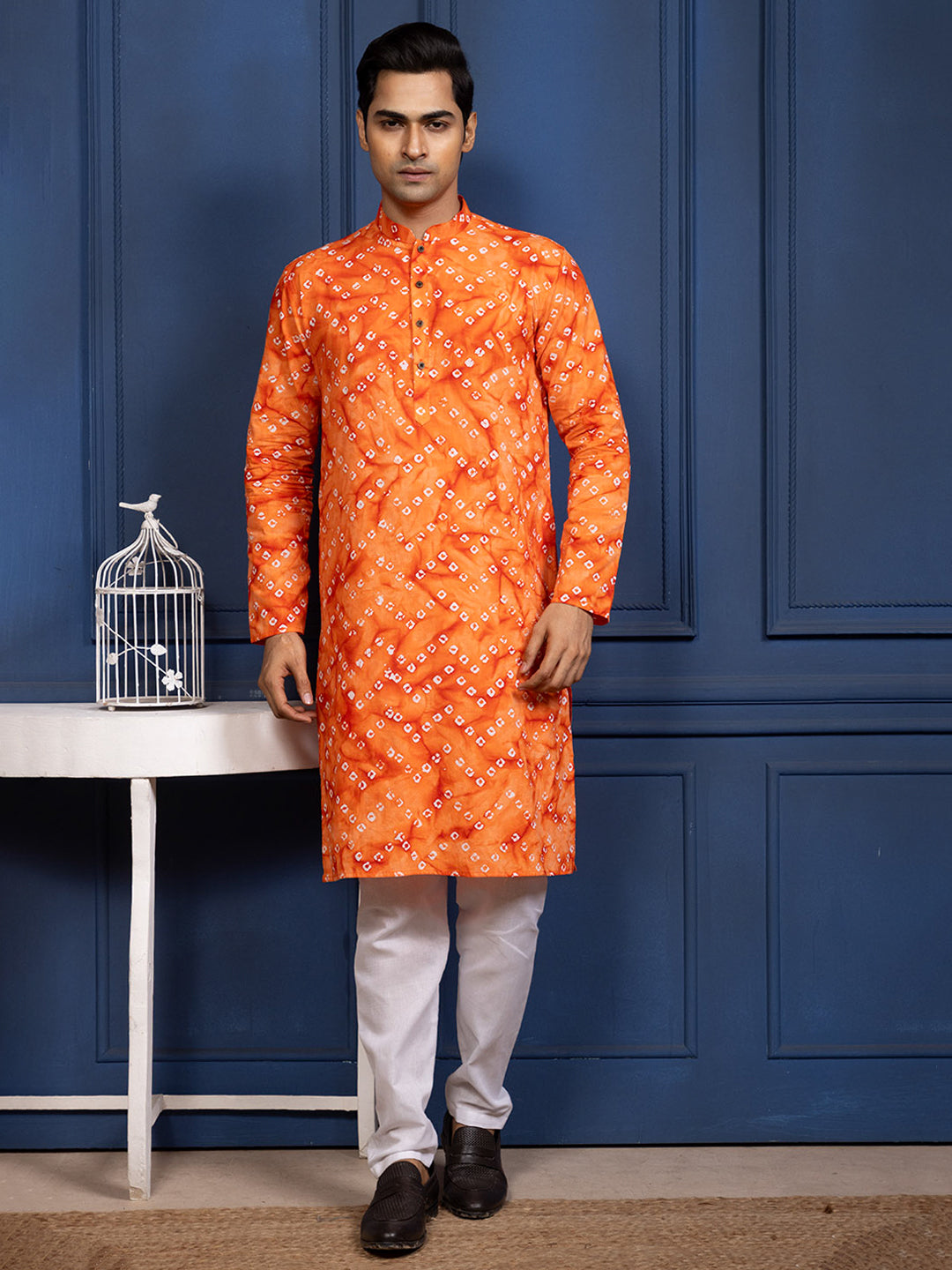 Elevate your ethnic style with this elegant Orange Cotton kurta set. Designed for festive and wedding occasions, it features a refined look with a stylish print, making it a timeless wardrobe addition.