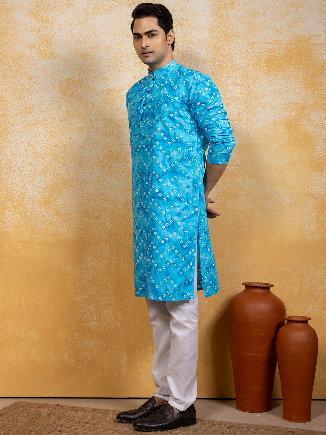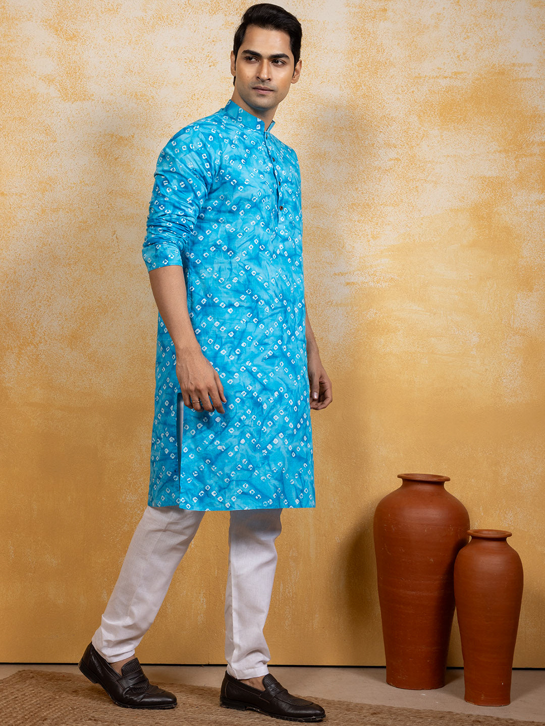 Elevate your ethnic style with this elegant Sky Blue Cotton kurta set. Designed for festive and wedding occasions, it features a refined look with a stylish print, making it a timeless wardrobe addition.