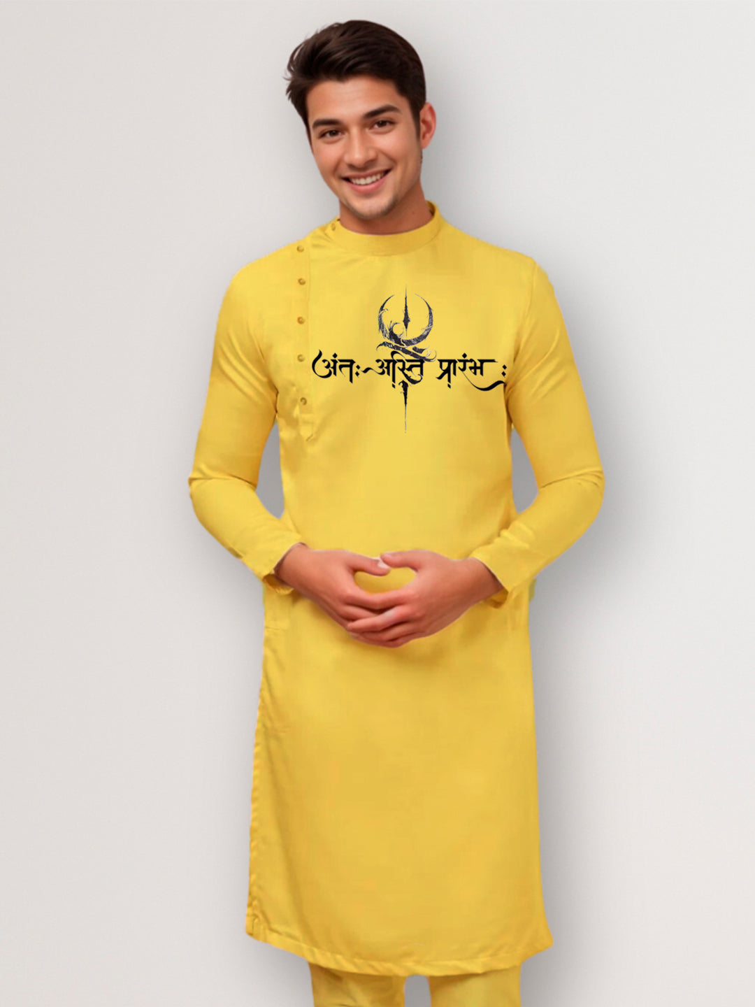Exude elegance and tradition with this Yellow Cotton Kurta With Pyjama Set, featuring an exquisite ethnic motif print that enhances its regal appeal. Designed for comfort and style, this kurta is perfect for festive occasions, weddings, and cultural celebrations.