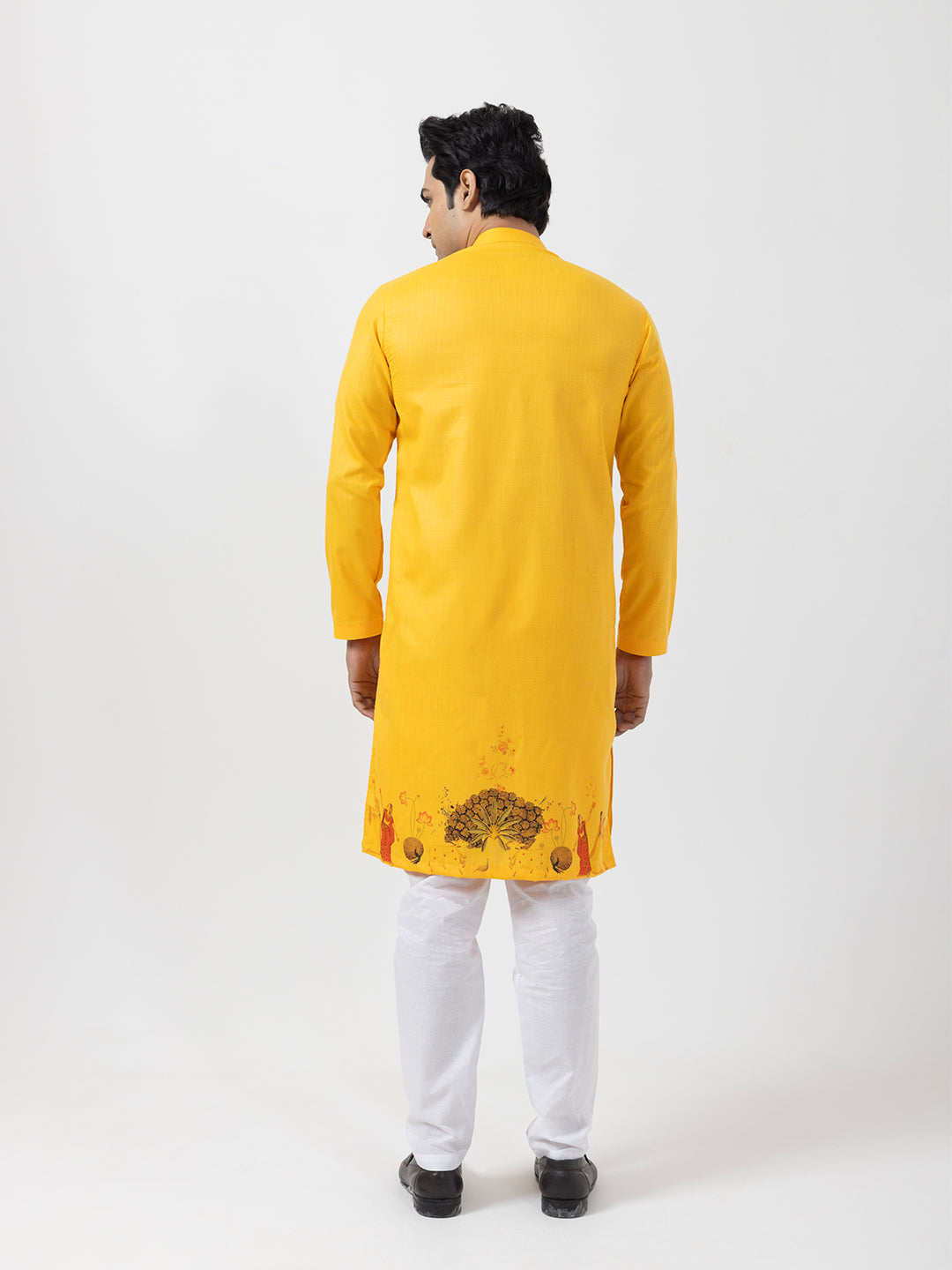 Exude elegance and tradition with this Yellow Cotton Kurta With Pyjama Set, featuring an exquisite ethnic motif print that enhances its regal appeal. Designed for comfort and style, this kurta is perfect for festive occasions, weddings, and cultural celebrations.