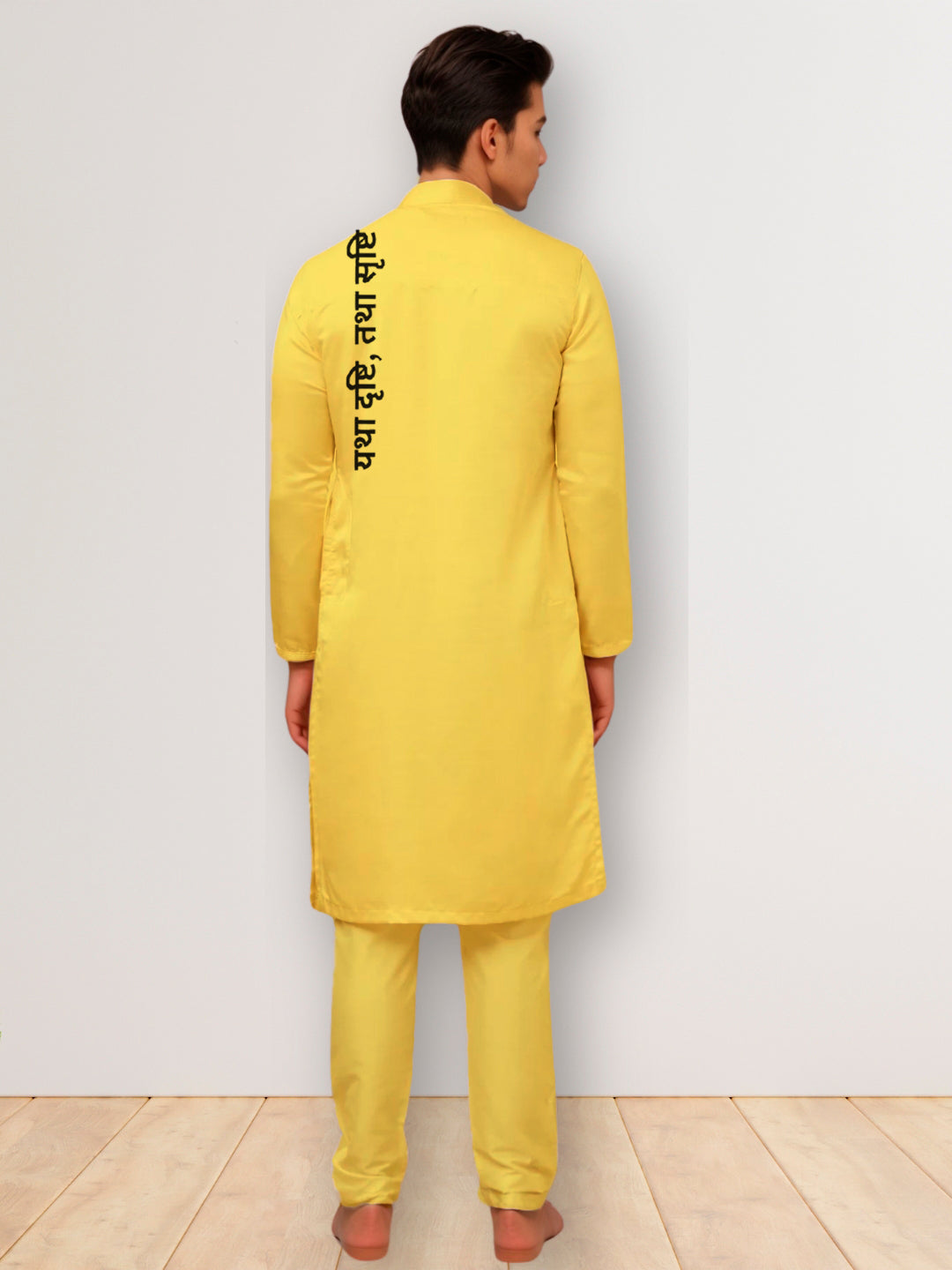 Exude elegance and tradition with this Yellow Cotton Kurta With Pyjama Set, featuring an exquisite ethnic motif print that enhances its regal appeal. Designed for comfort and style, this kurta is perfect for festive occasions, weddings, and cultural celebrations.