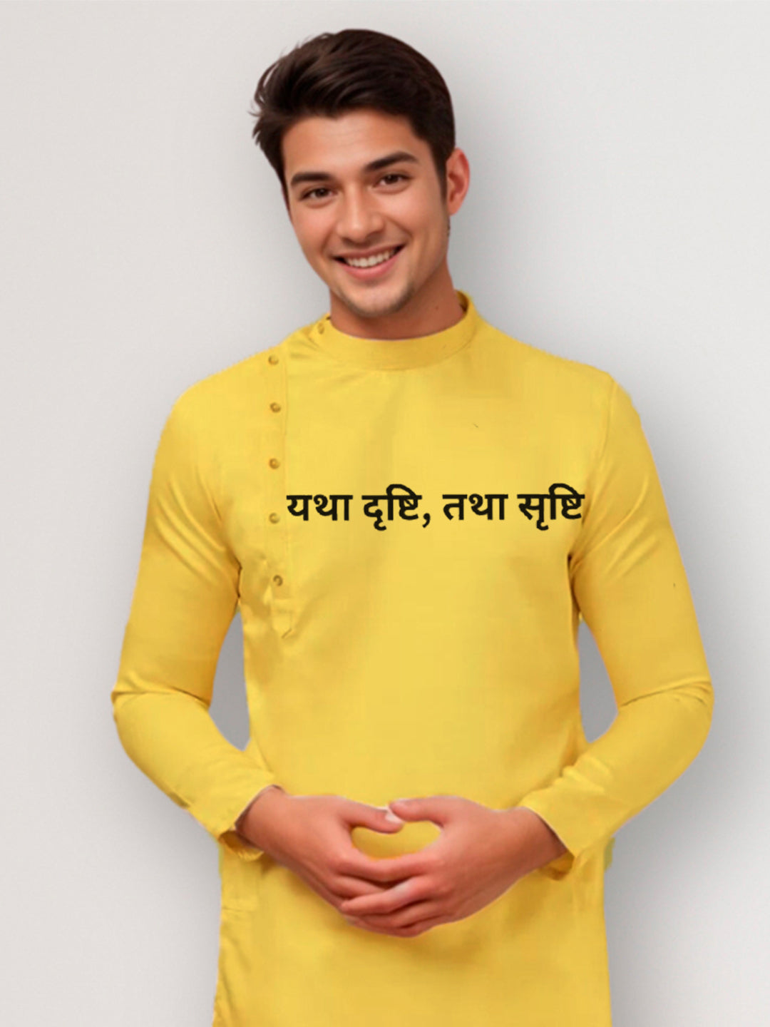 Pair this Yellow Cotton Kurta with a contrasting churidar or straight-fit pyjama to achieve a refined ethnic look. Complete the outfit with classic mojaris or leather sandals.