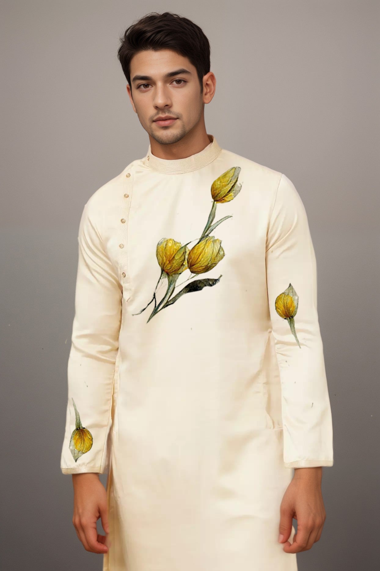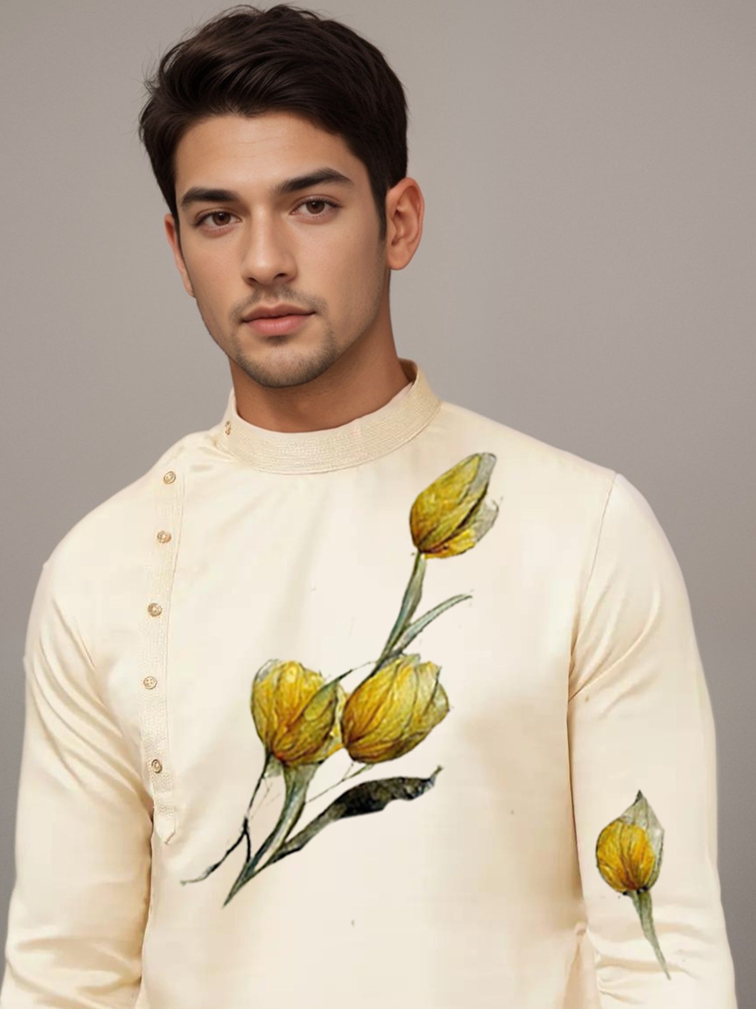 Exude elegance and tradition with this Beige Cotton Kurta With Pyjama Set, featuring an exquisite ethnic motif print that enhances its regal appeal. Designed for comfort and style, this kurta is perfect for festive occasions, weddings, and cultural celebrations.