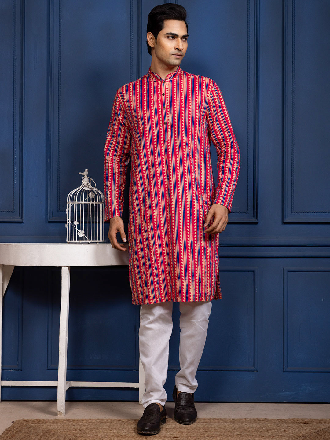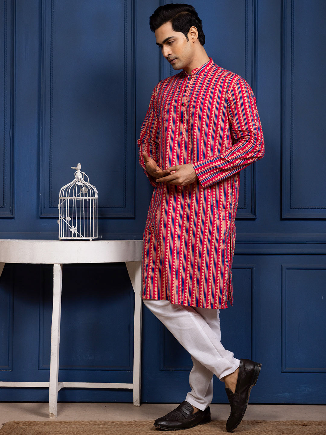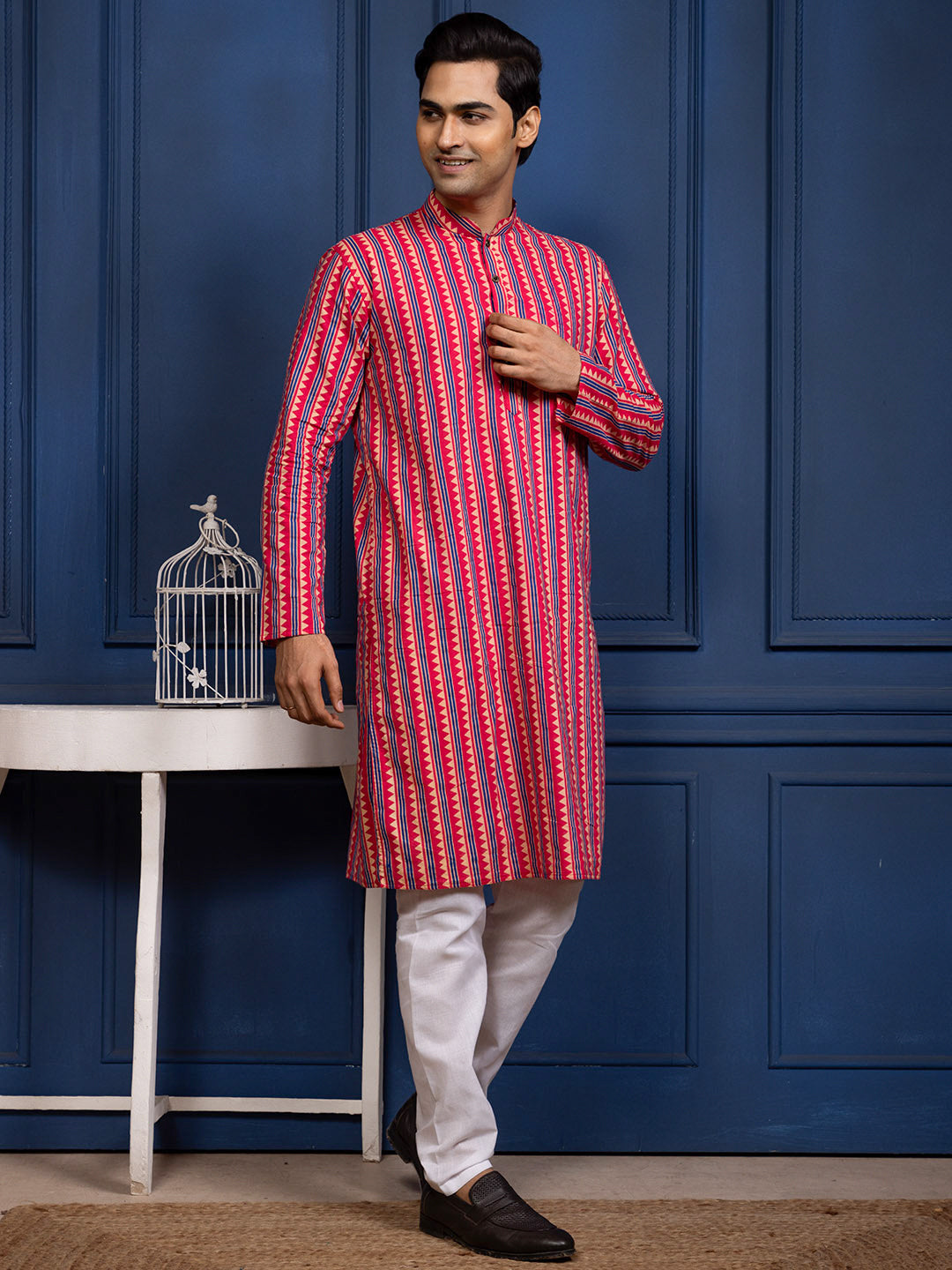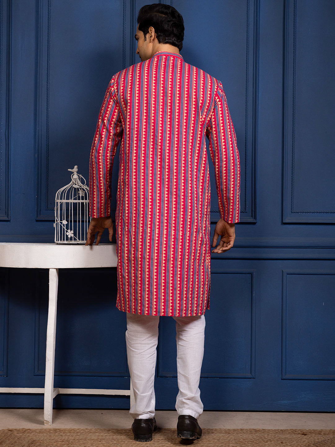 Elevate your ethnic style with this elegant Pink Cotton kurta set. Designed for festive and wedding occasions, it features a refined look with a stylish print, making it a timeless wardrobe addition.