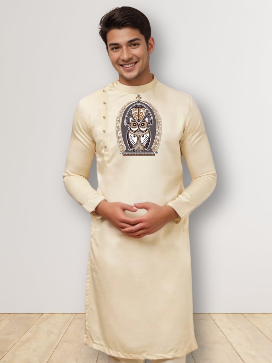 Exude elegance and tradition with this Beige Cotton Kurta With Pyjama Set, featuring an exquisite ethnic motif print that enhances its regal appeal. Designed for comfort and style, this kurta is perfect for festive occasions, weddings, and cultural celebrations.