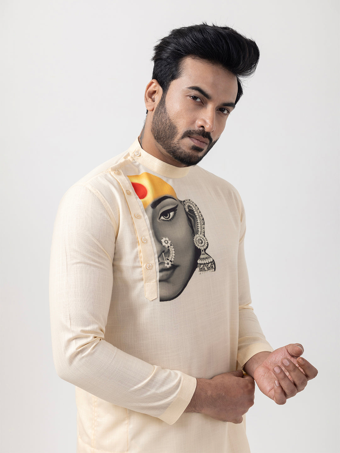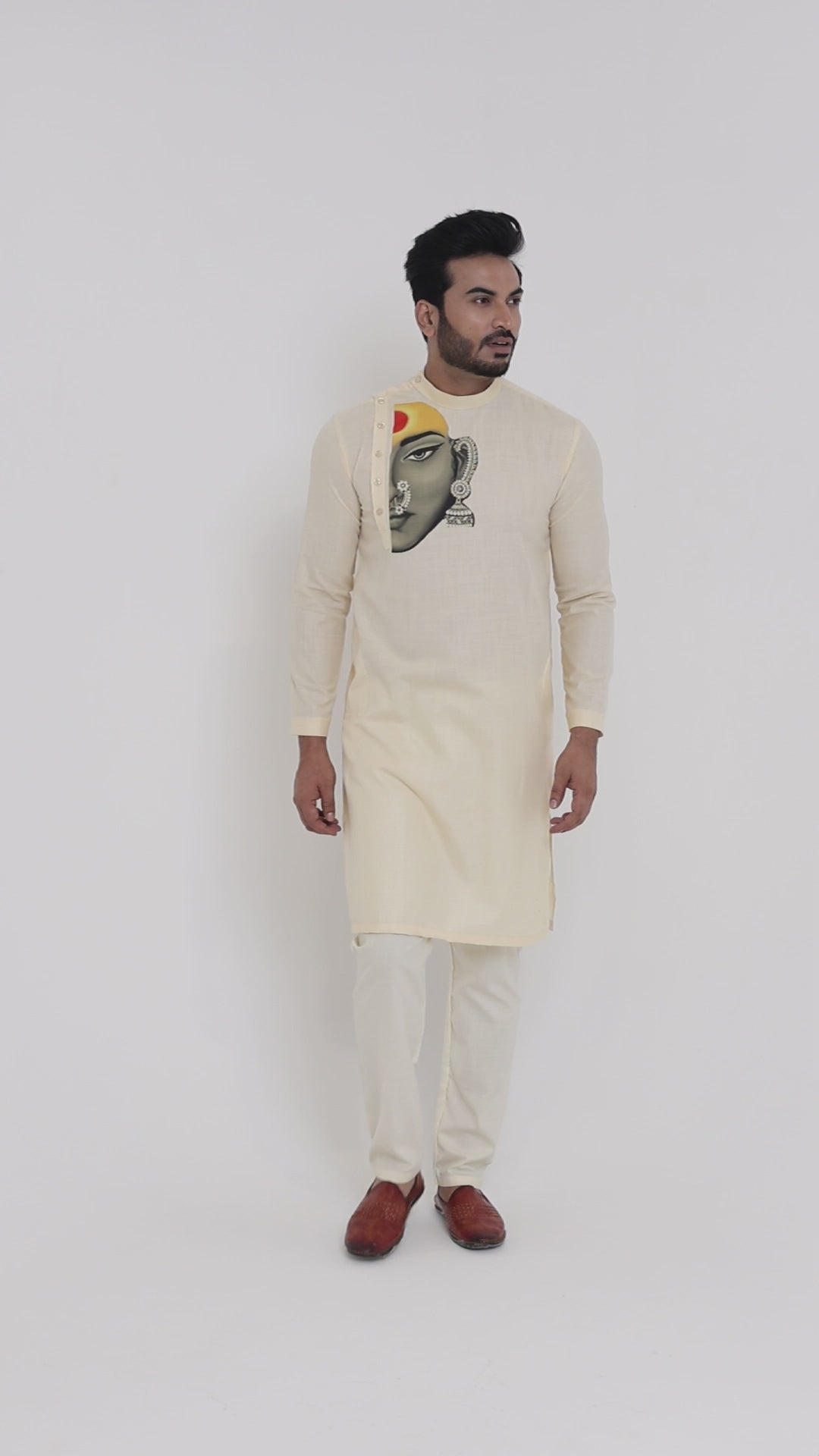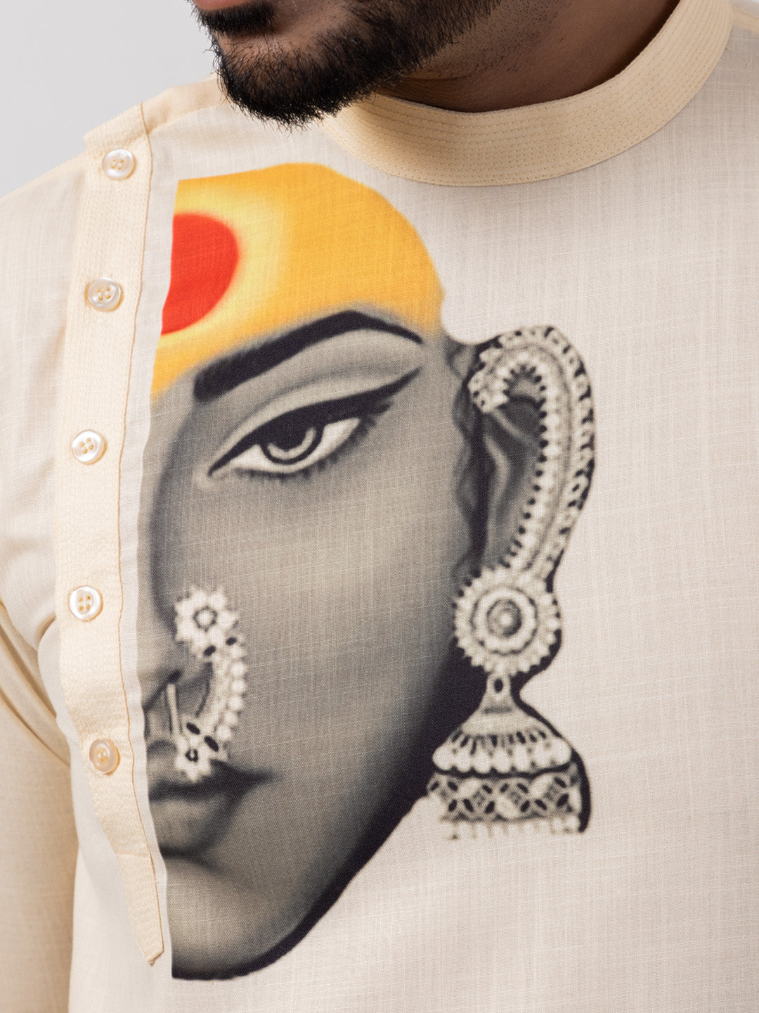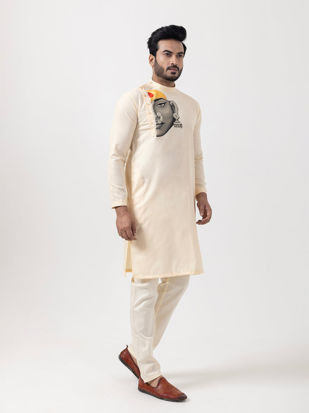 Exude elegance and tradition with this Beige Cotton Kurta With Pyjama Set, featuring an exquisite ethnic motif print that enhances its regal appeal. Designed for comfort and style, this kurta is perfect for festive occasions, weddings, and cultural celebrations.
