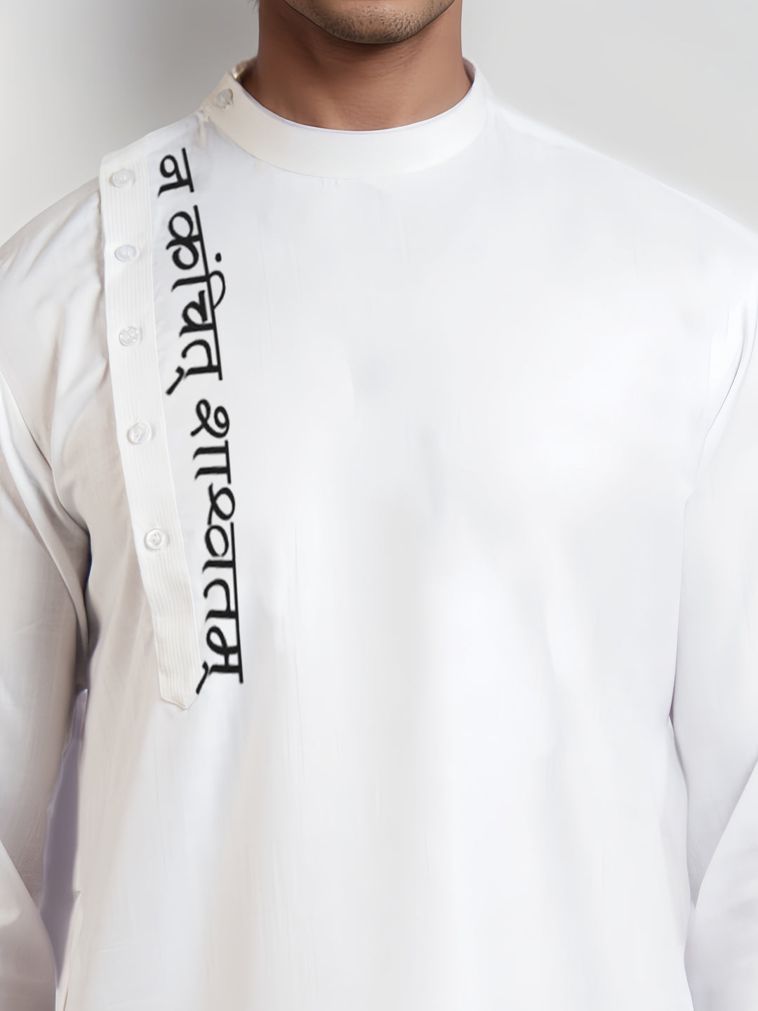 Pair this White Cotton Kurta with a contrasting churidar or straight-fit pyjama to achieve a refined ethnic look. Complete the outfit with classic mojaris or leather sandals.