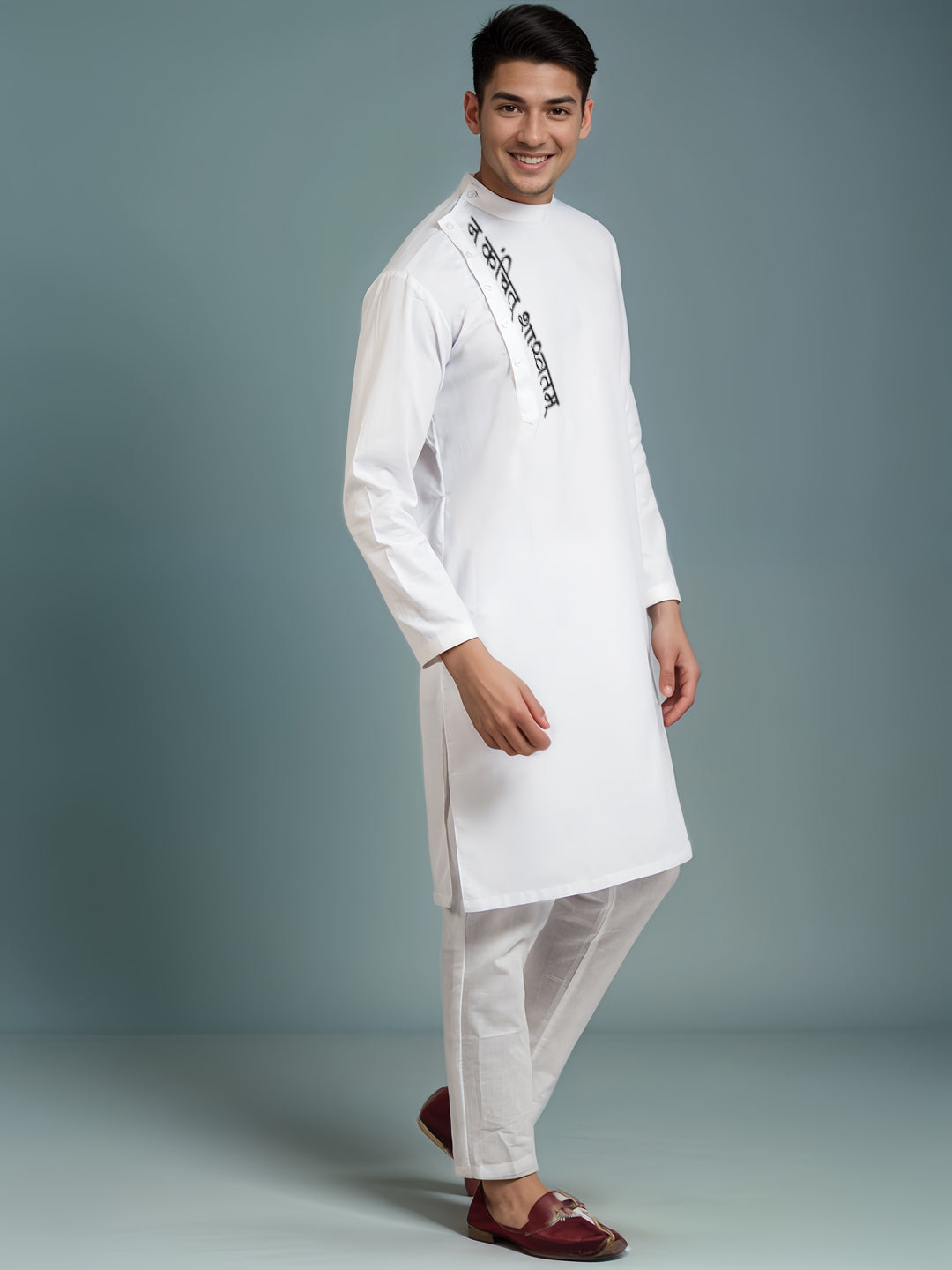 Exude elegance and tradition with this White Cotton Kurta With Pyjama Set, featuring an exquisite ethnic motif print that enhances its regal appeal. Designed for comfort and style, this kurta is perfect for festive occasions, weddings, and cultural celebrations.