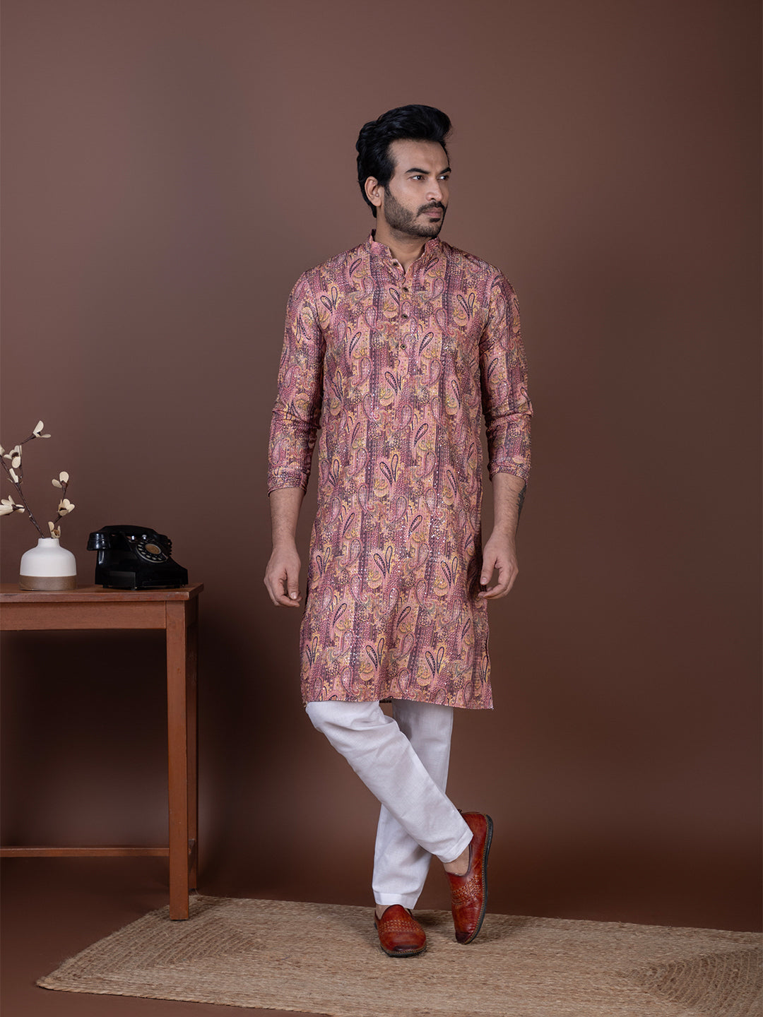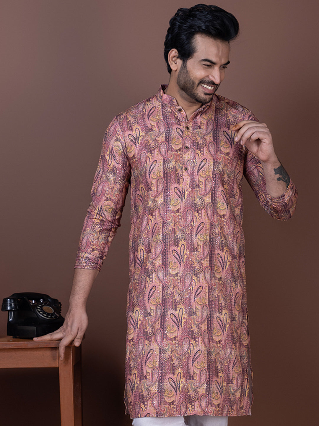 Paisley Printed Mandarin Collar Straight Kurta Pyjama Set