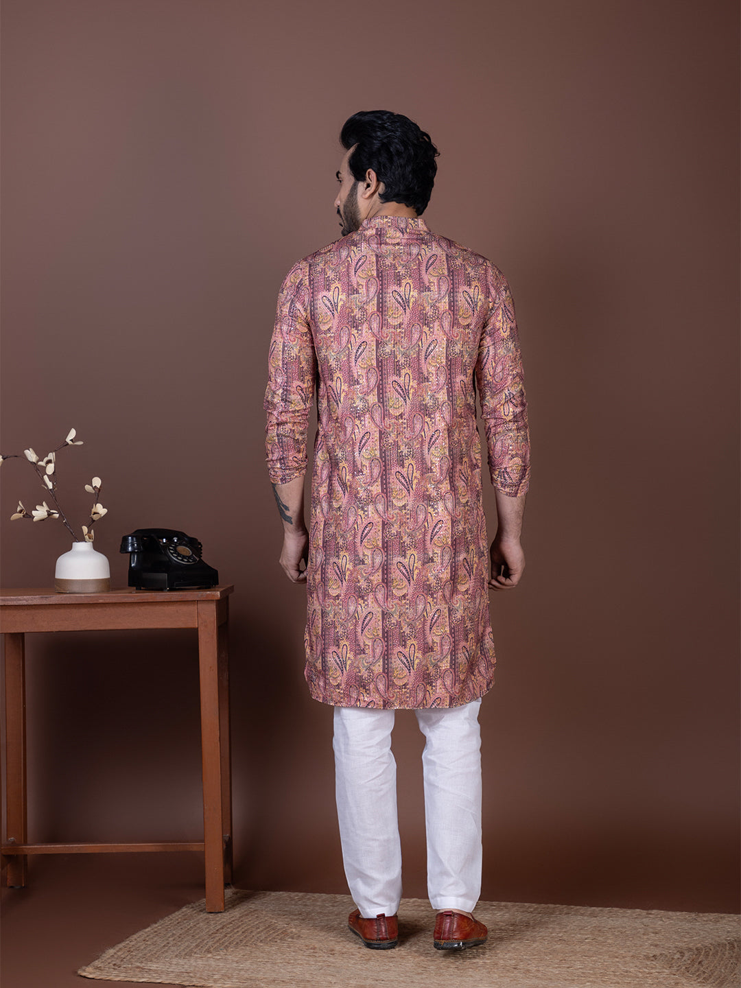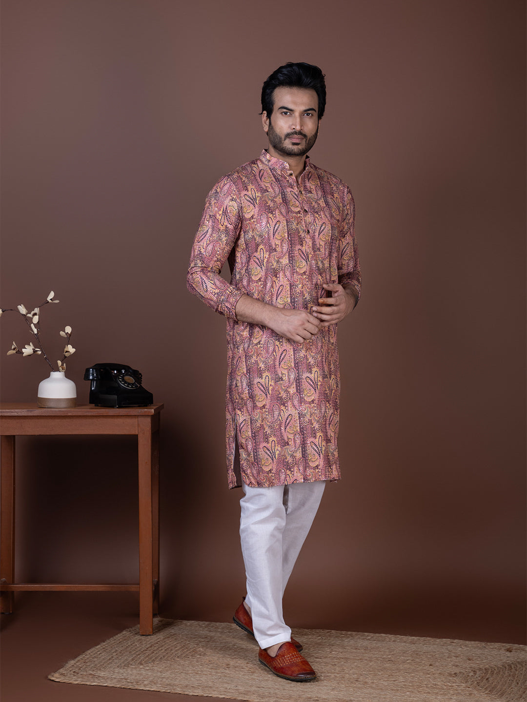 Pair this Multi kurta with white churidar or slim-fit trousers for a timeless ethnic look. Complete the outfit with leather loafers or traditional juttis to make a bold style statement.