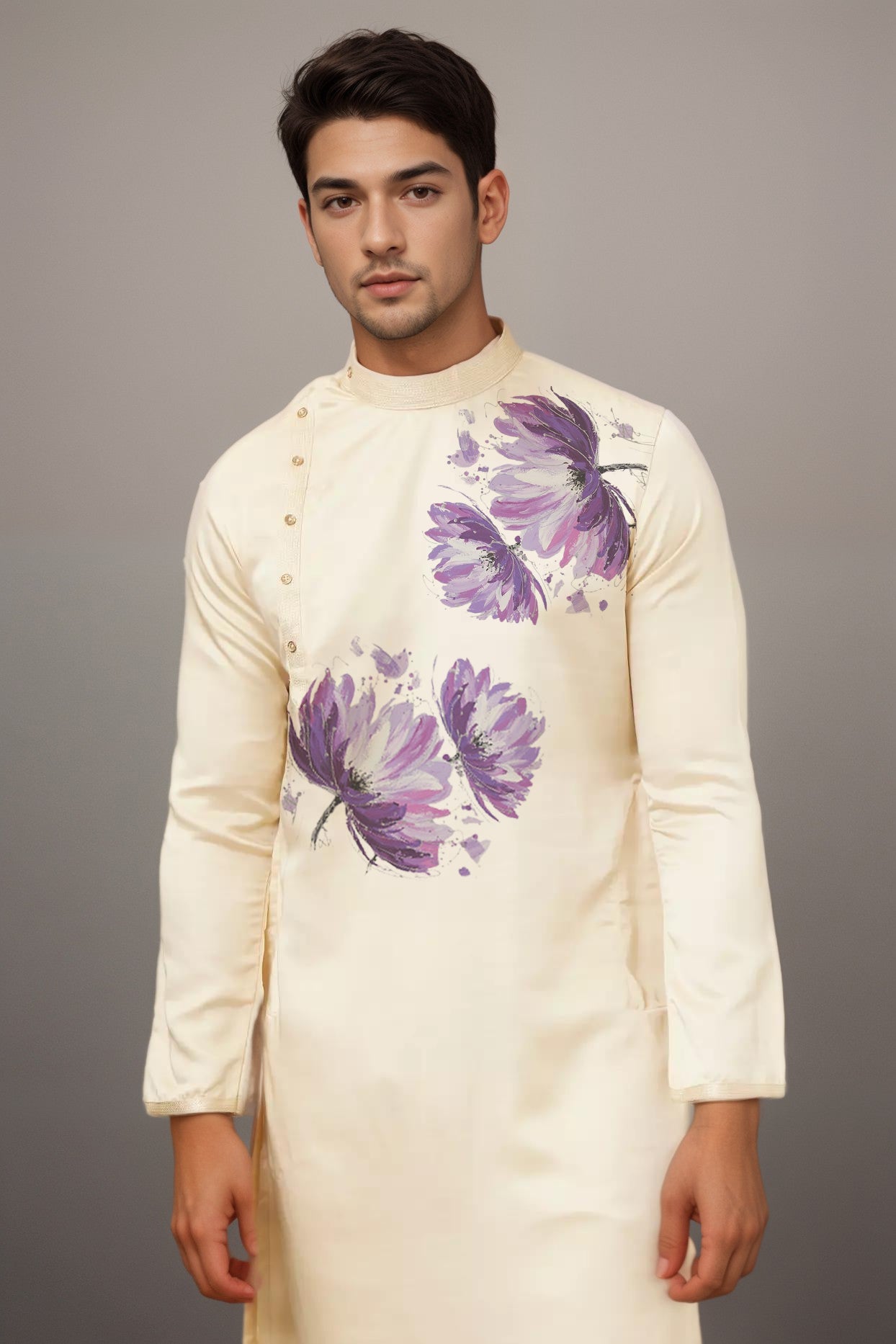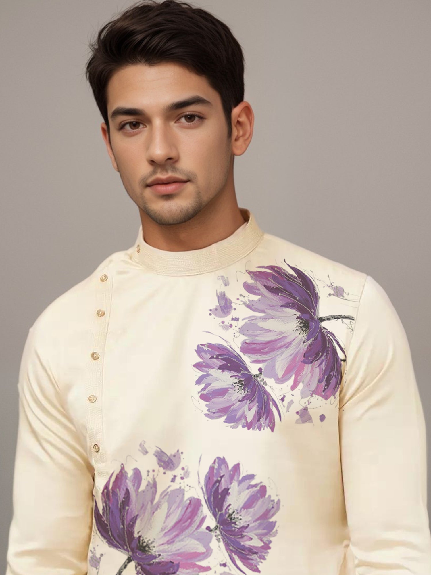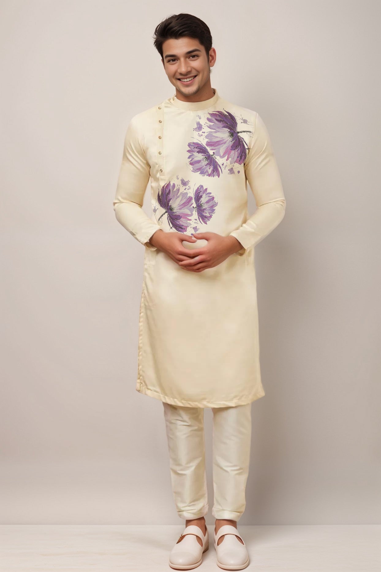 Exude elegance and tradition with this Beige Cotton Kurta With Pyjama Set, featuring an exquisite ethnic motif print that enhances its regal appeal. Designed for comfort and style, this kurta is perfect for festive occasions, weddings, and cultural celebrations.