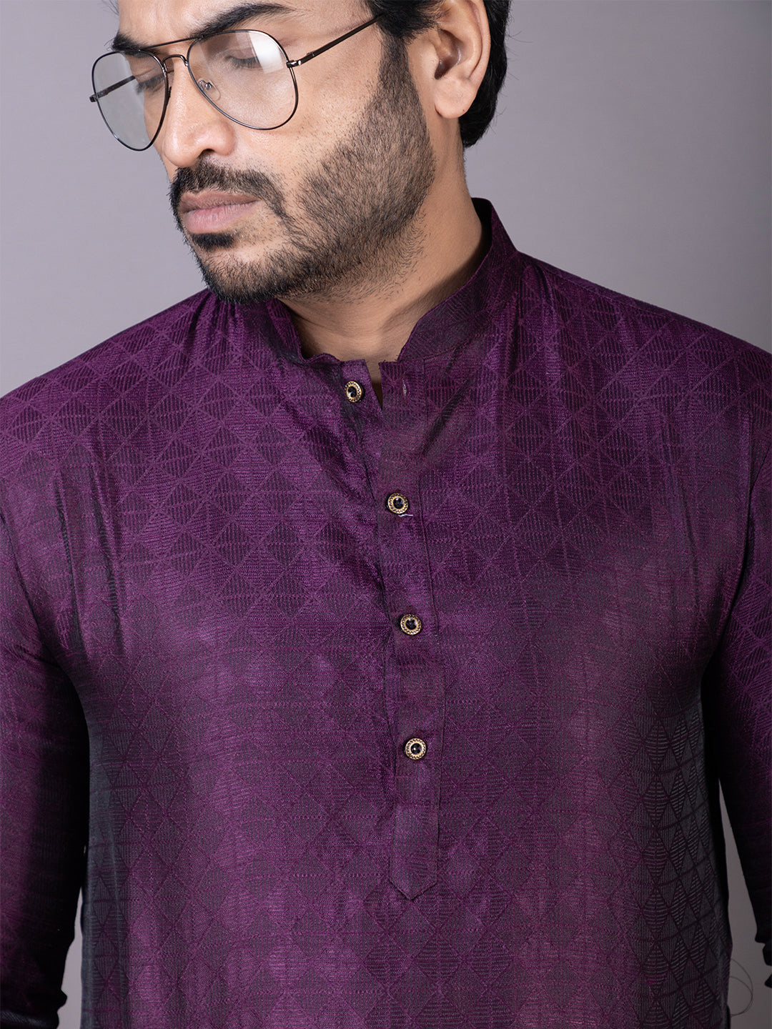 Elevate your style quotient with this Purple Jacquard kurta, designed for modern elegance and timeless charm. Perfect for formal occasions, evening events, and traditional gatherings, this kurta ensures both comfort and sophistication. The sleek design makes it a versatile addition to your wardrobe.