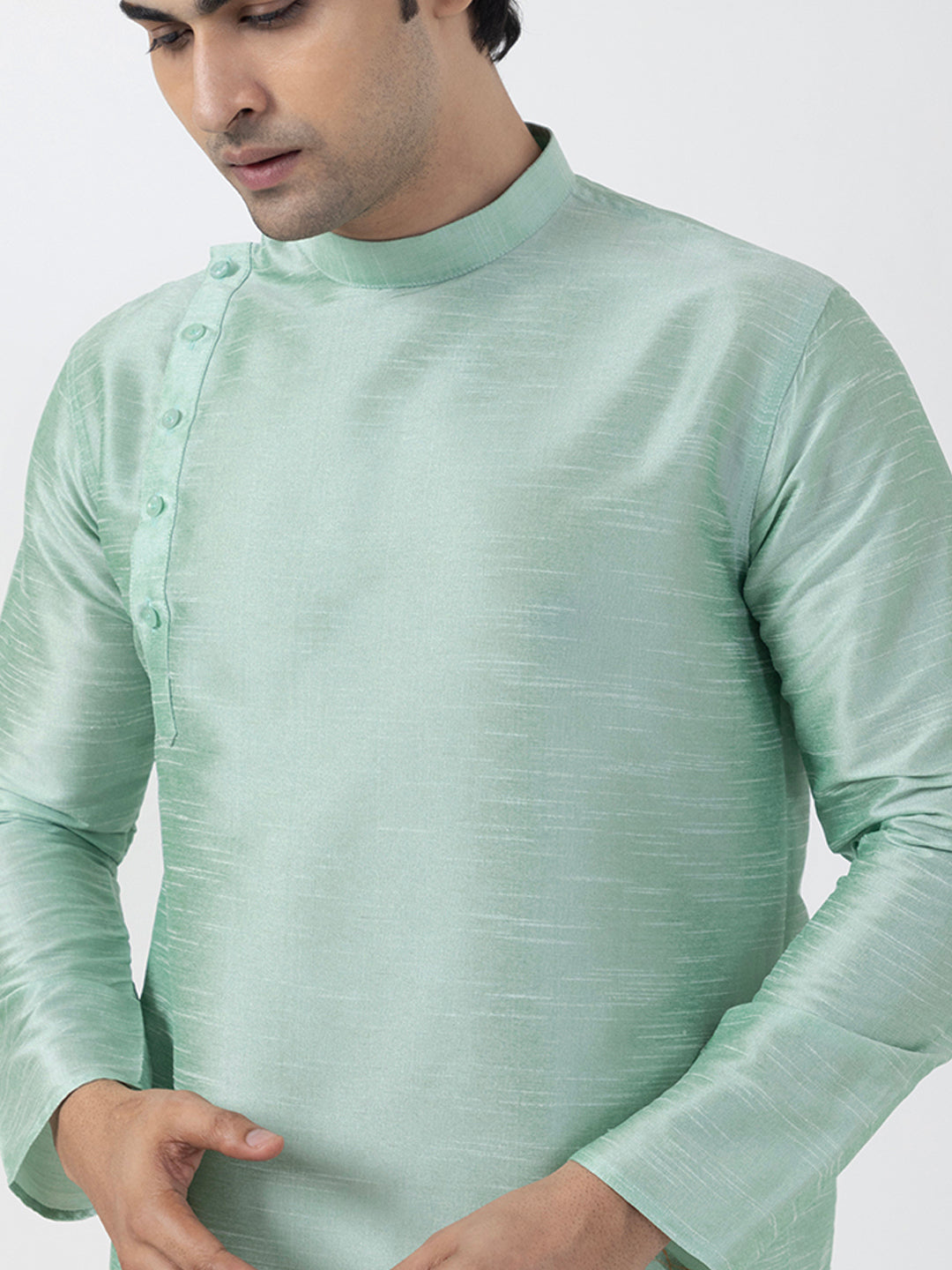Men Dupion Silk Angrakha Kurta With Pyjama Set