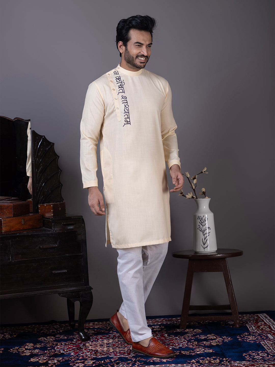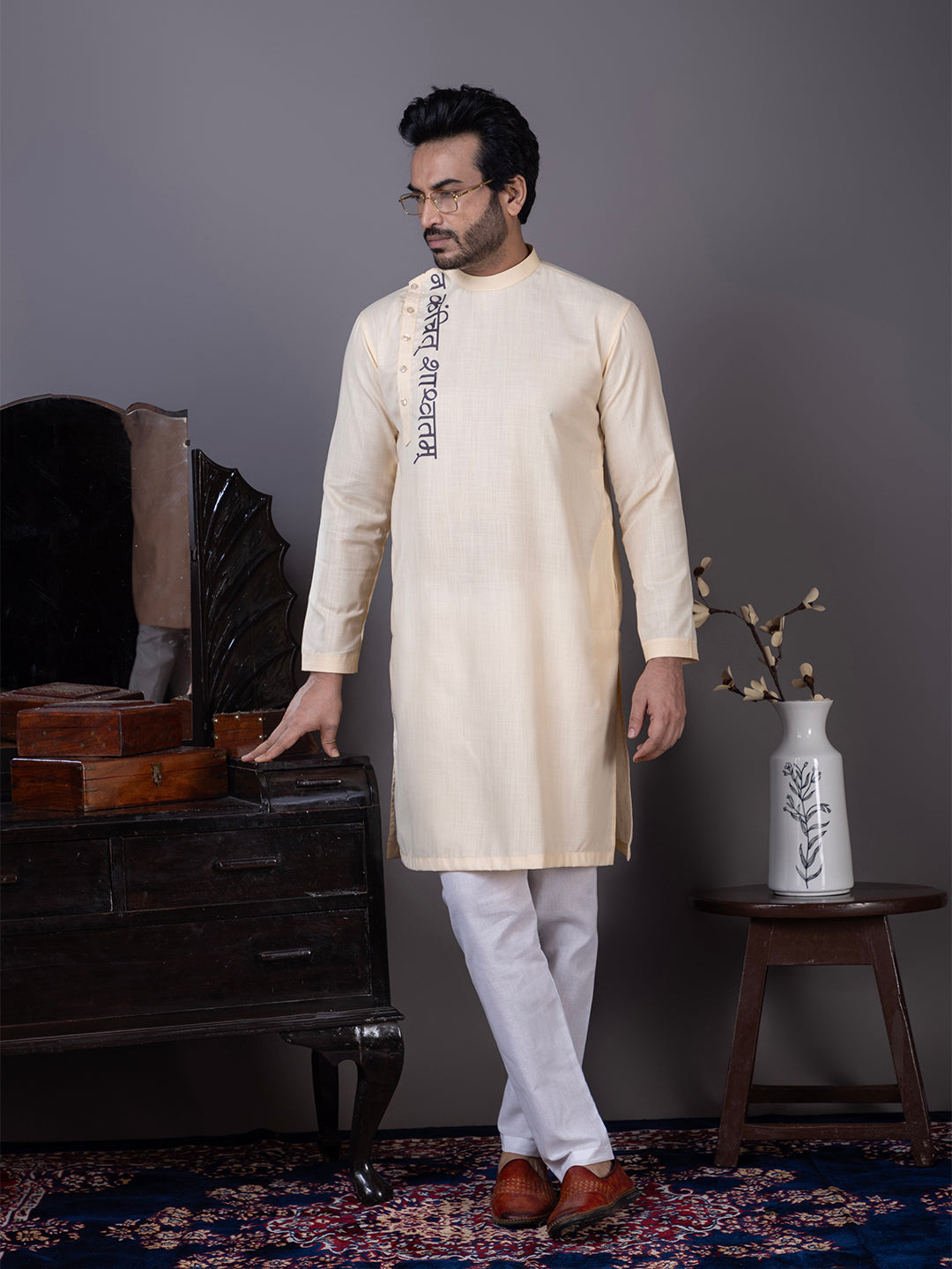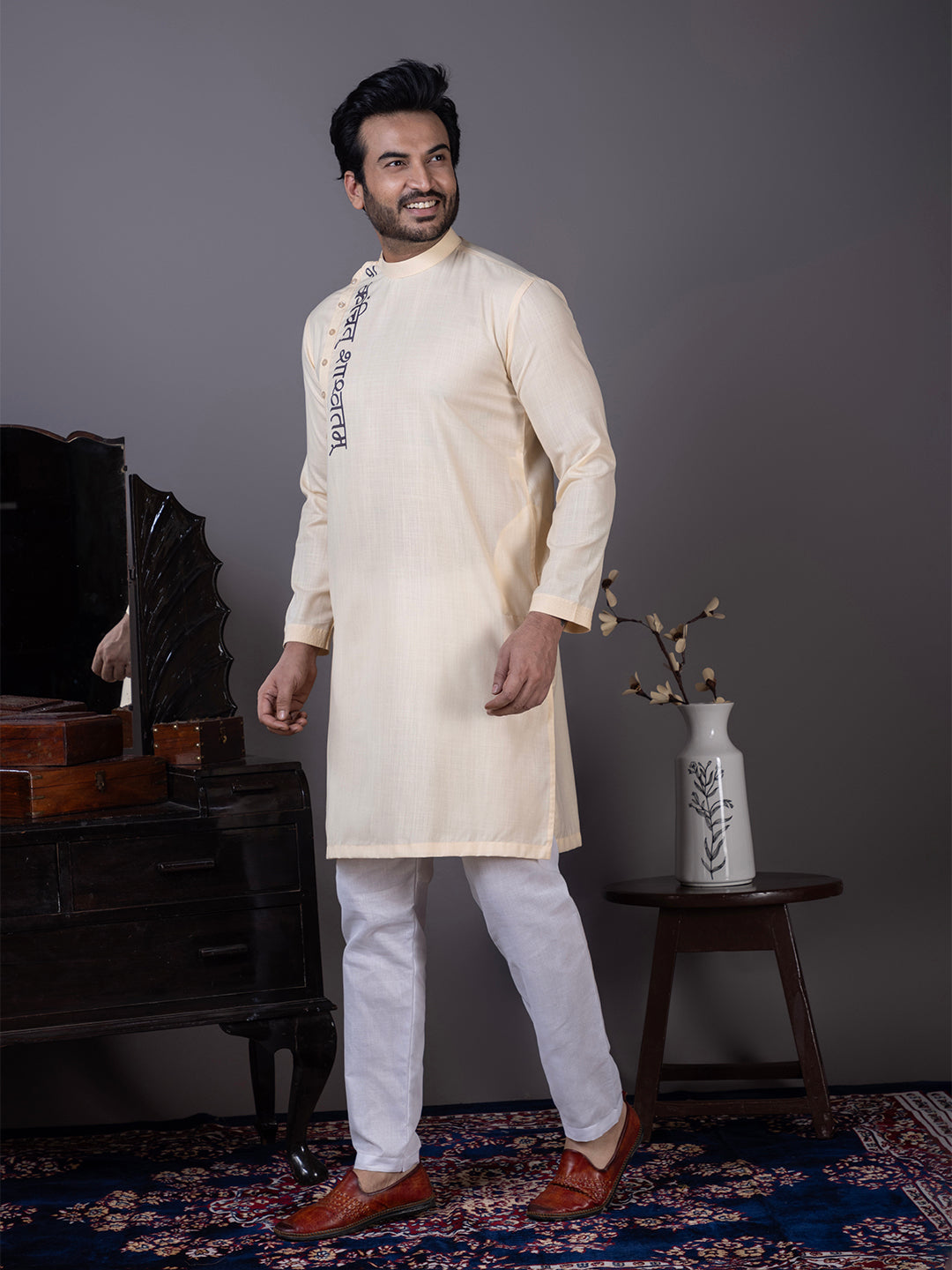 Add a touch of sophistication to your wardrobe with this beige cotton kurta. Designed for festive occasions, cultural events, and family gatherings, this kurta seamlessly blends traditional aesthetics with modern design elements. Crafted from premium cotton fabric, it offers both comfort and durability.