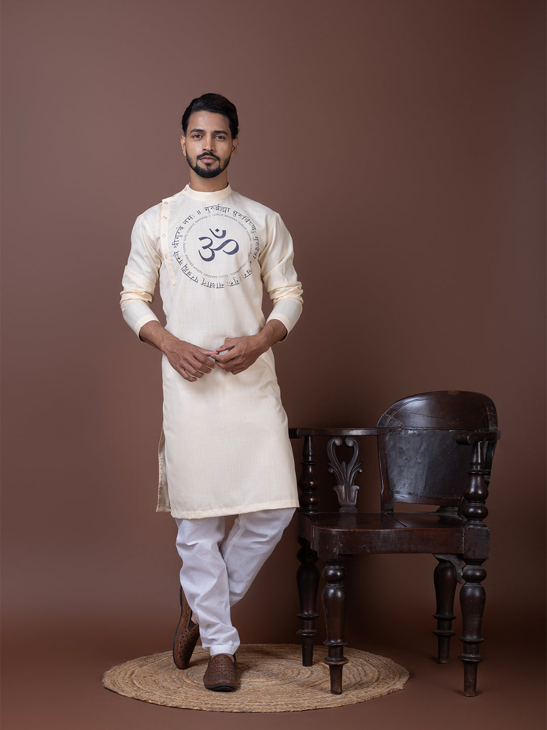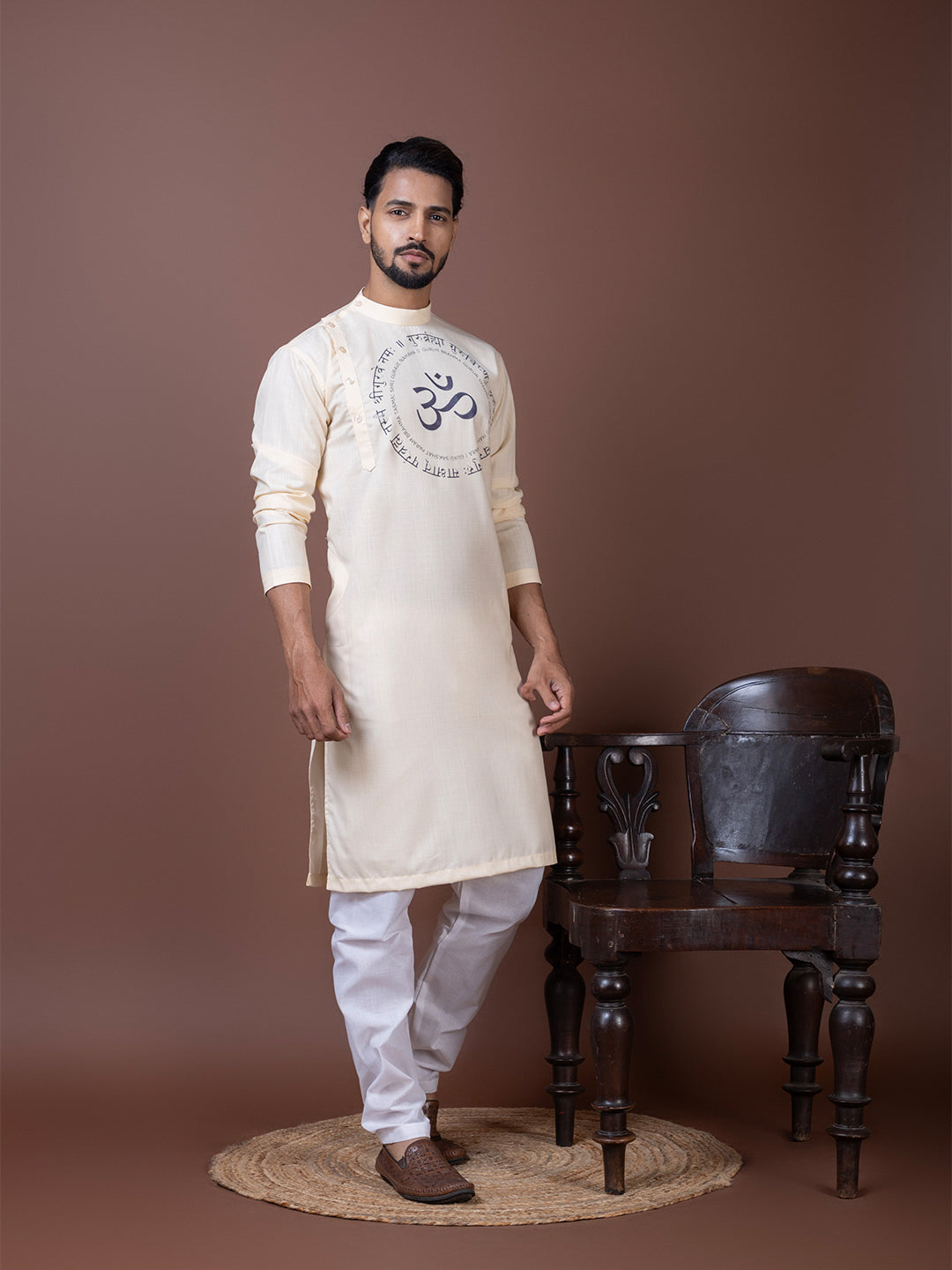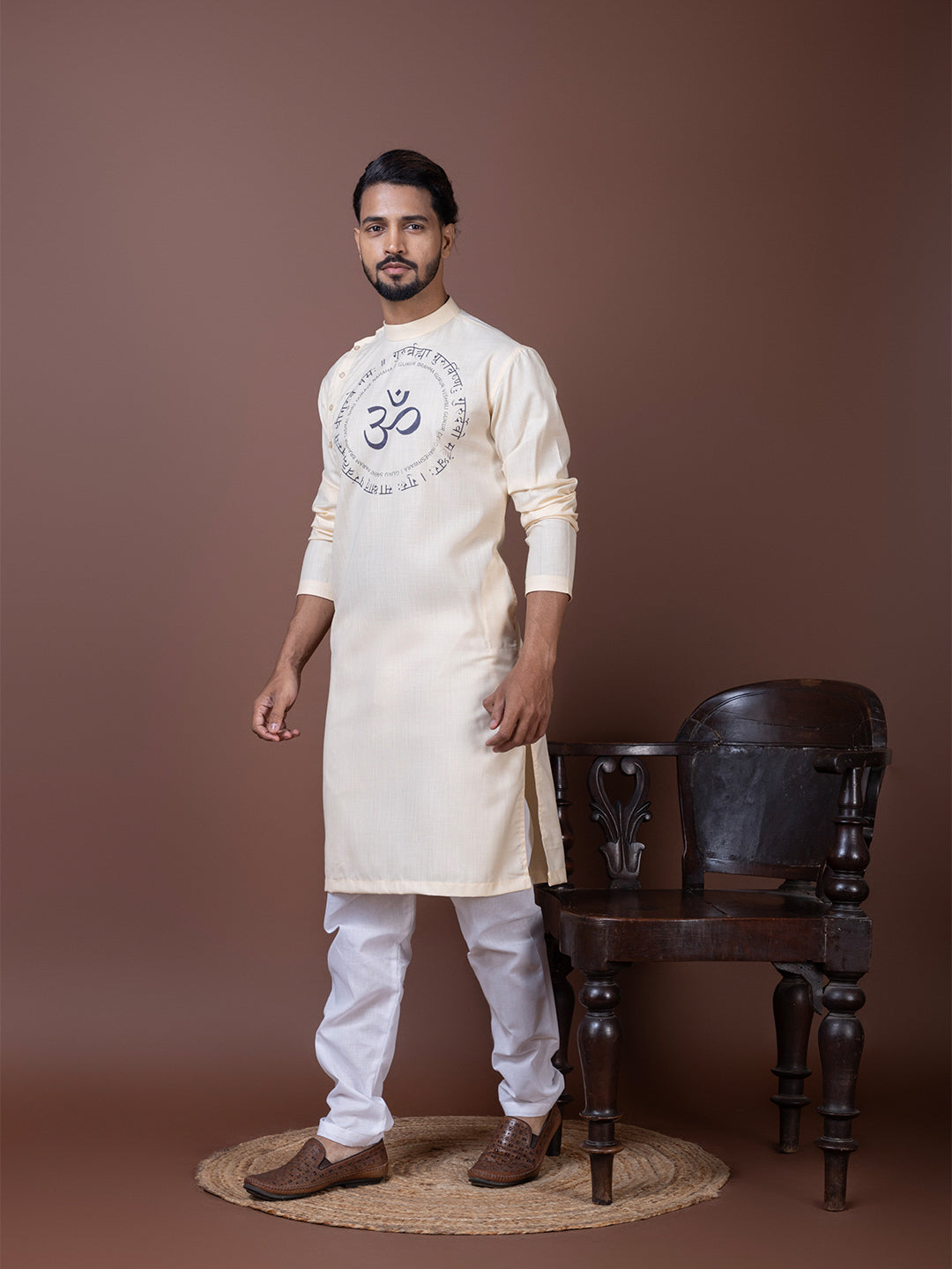 Exude elegance and tradition with this Beige Cotton Kurta With Pyjama Set, featuring an exquisite ethnic motif print that enhances its regal appeal. Designed for comfort and style, this kurta is perfect for festive occasions, weddings, and cultural celebrations.