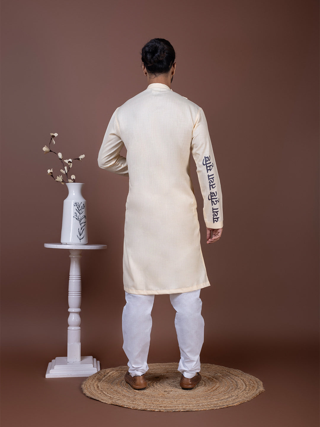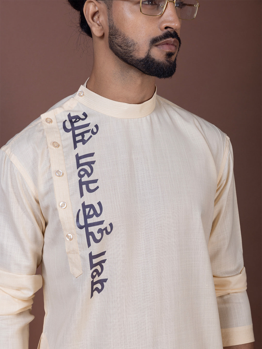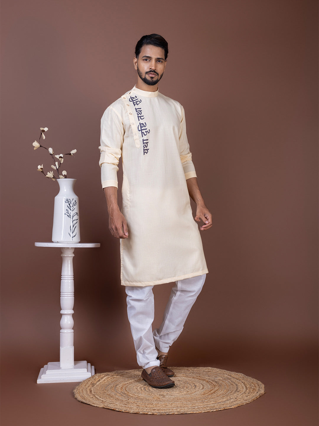 Exude elegance and tradition with this Beige Cotton Kurta With Pyjama Set, featuring an exquisite ethnic motif print that enhances its regal appeal. Designed for comfort and style, this kurta is perfect for festive occasions, weddings, and cultural celebrations.