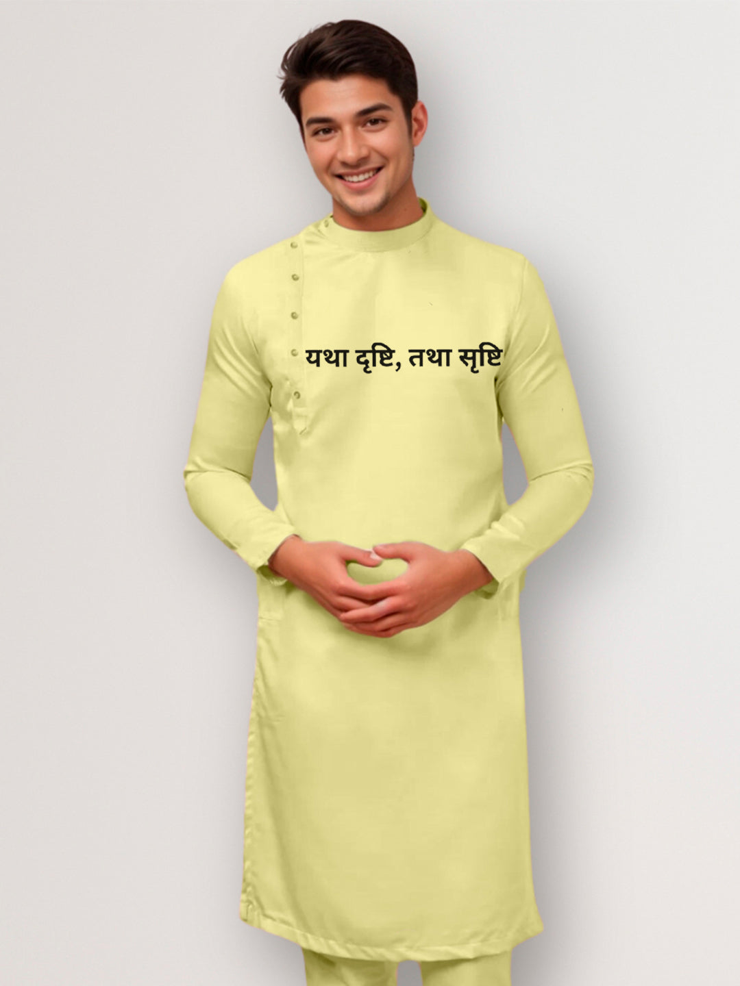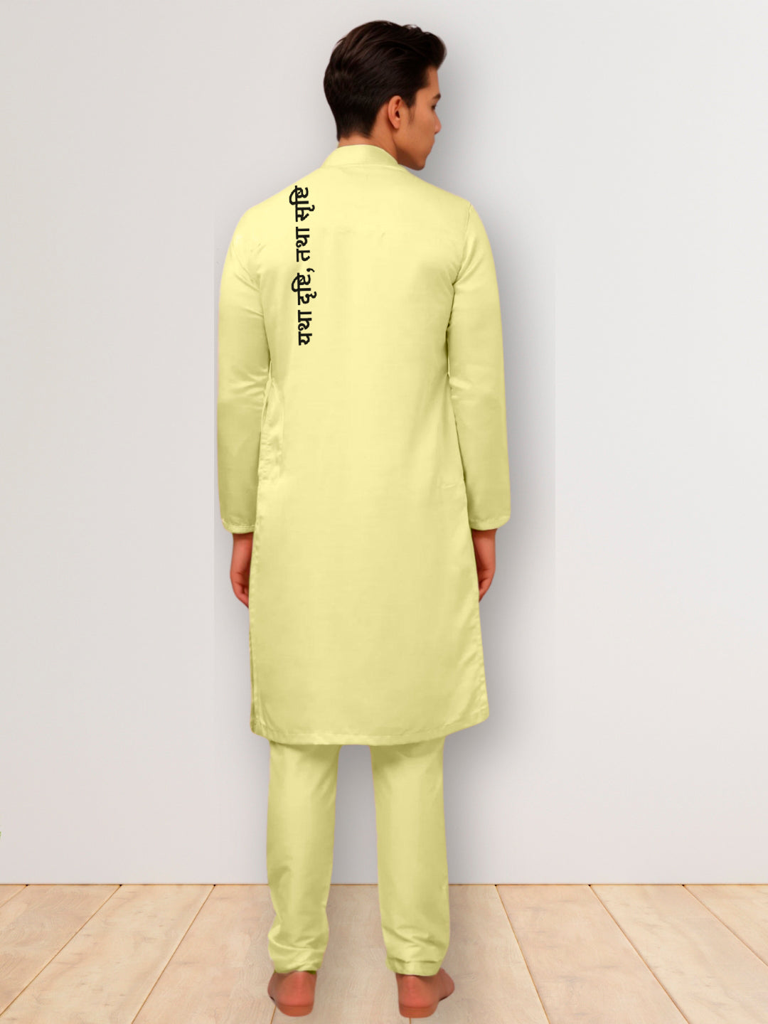 Mens Lime Green Side Placket Printed Kurta Wite Pyjama Set