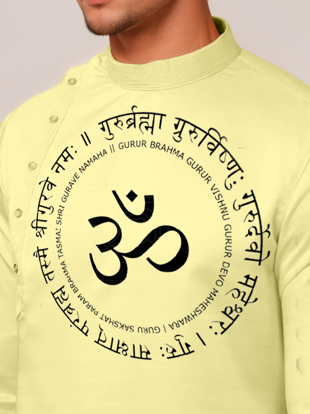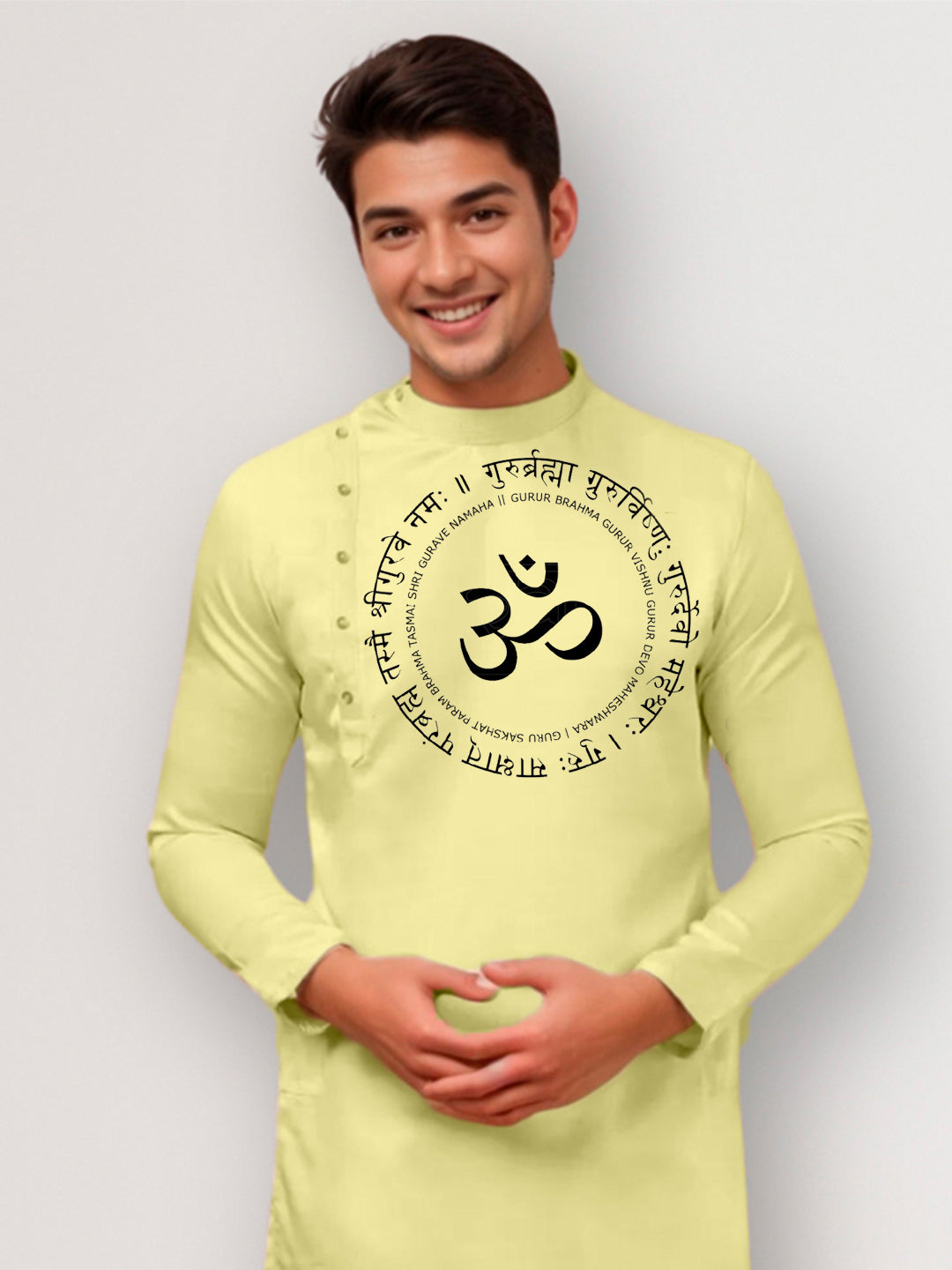 Mens Lime Green Side Placket Printed Kurta Wite Pyjama Set