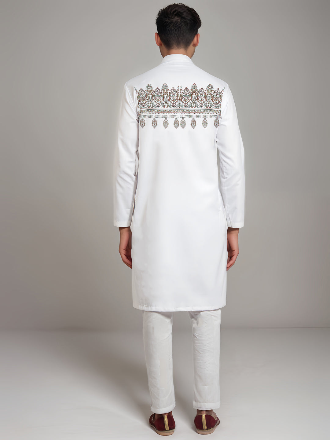 Exude elegance and tradition with this White Cotton Kurta With Pyjama Set, featuring an exquisite ethnic motif print that enhances its regal appeal. Designed for comfort and style, this kurta is perfect for festive occasions, weddings, and cultural celebrations.