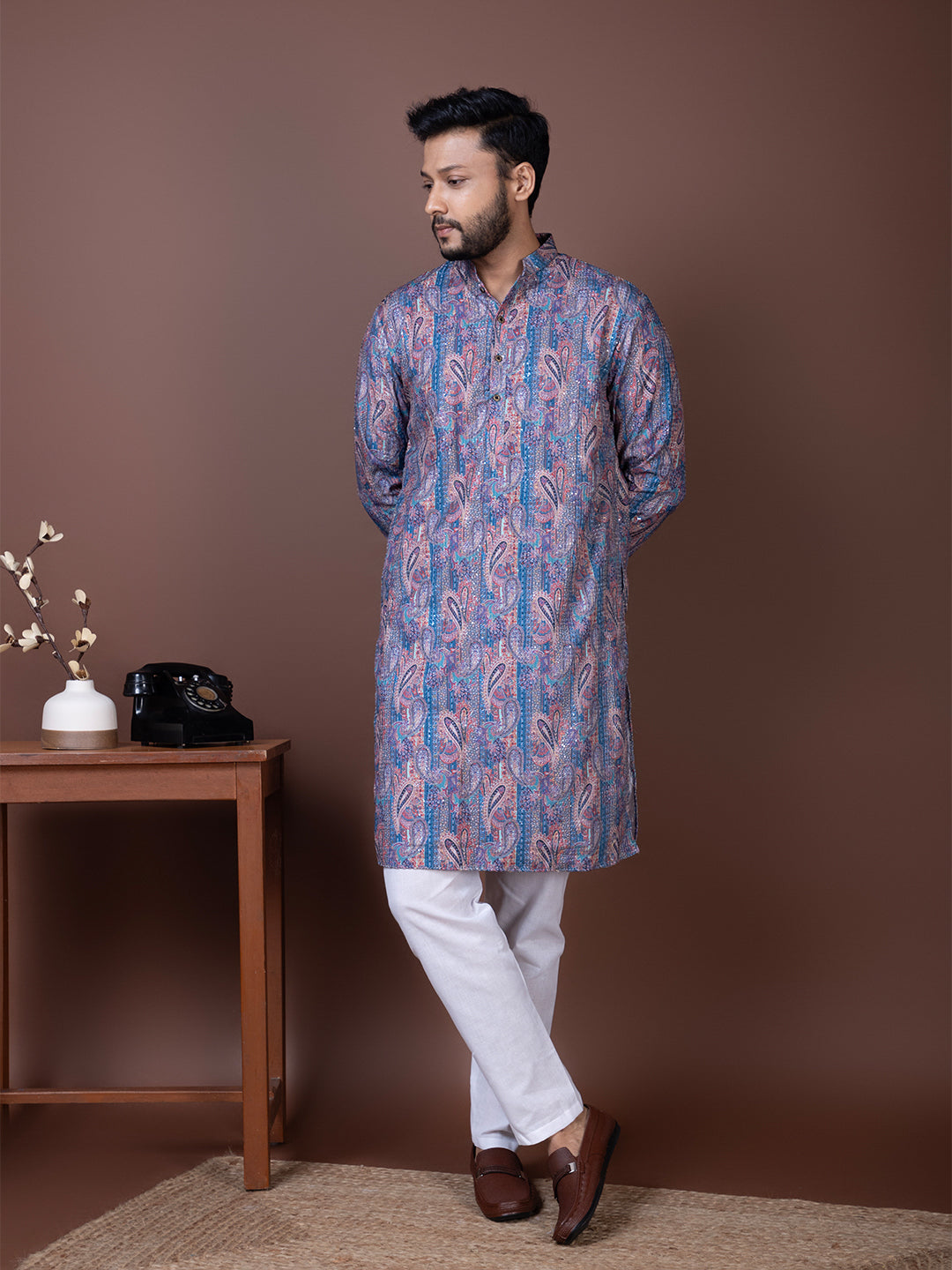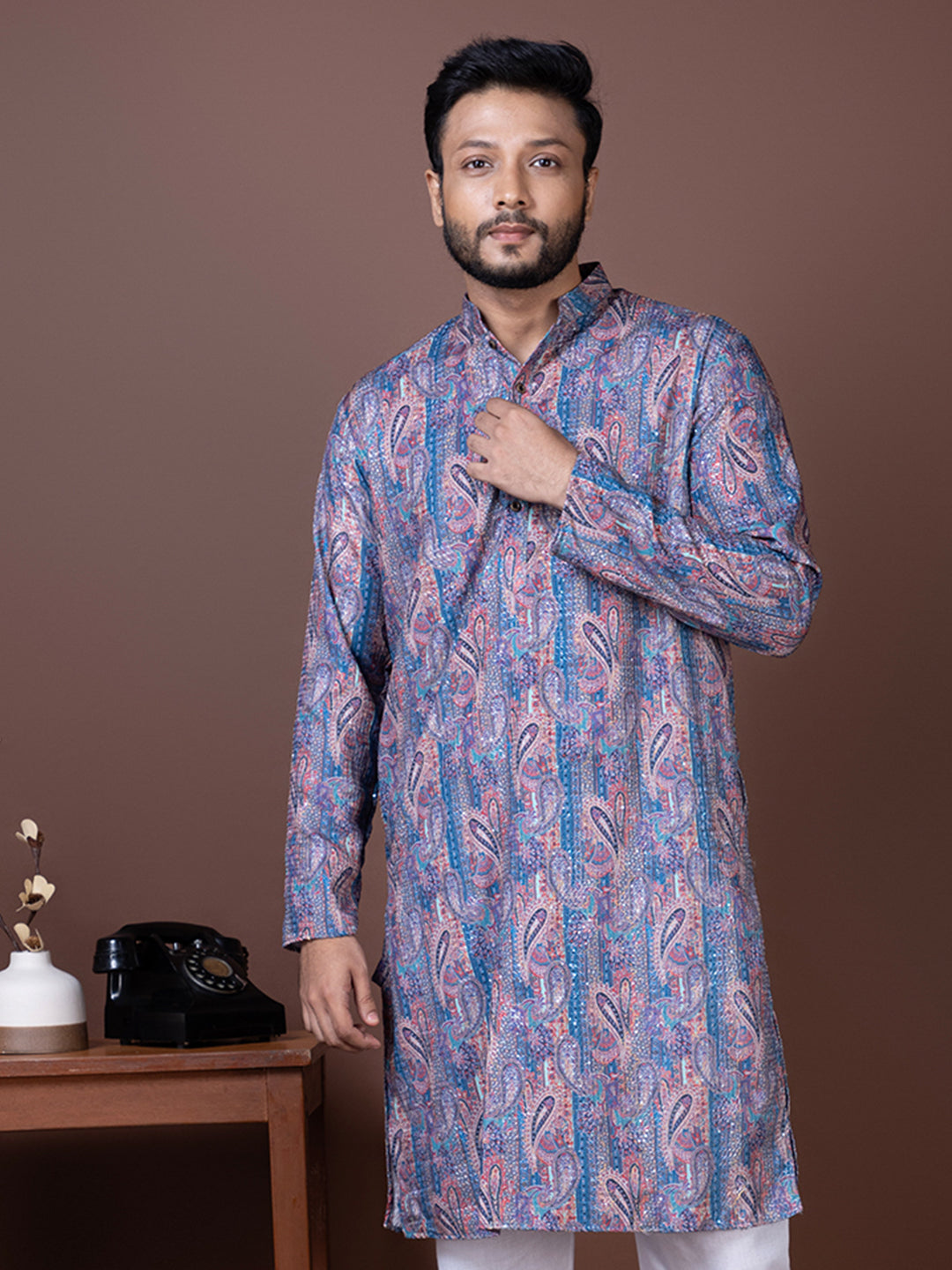 Pair this Multi kurta with white churidar or slim-fit trousers for a timeless ethnic look. Complete the outfit with leather loafers or traditional juttis to make a bold style statement.