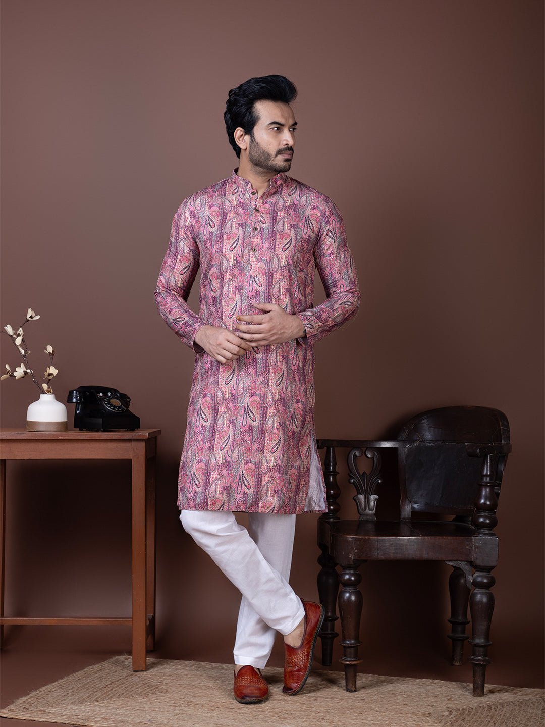 Men Paisley Printed Festive Straight Kurta Pyjama Set